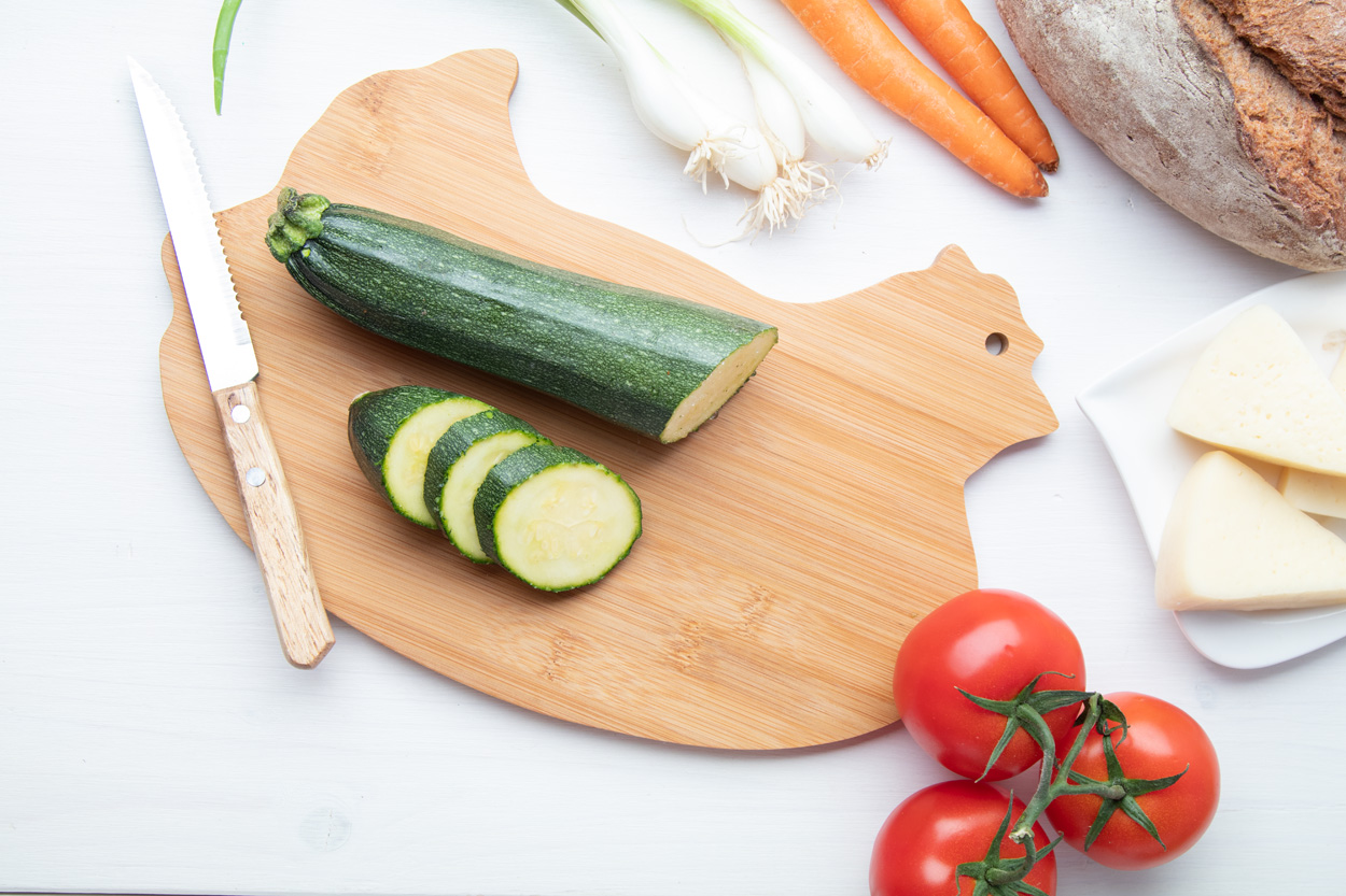 Bambusové prkénko na krájení ve tvaru kuřete.