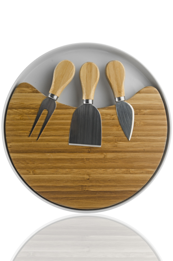 Deska na sýr CHEDDAR je elegantní sada pro servírování sýra. Sada CHEDDAR je nezbytná pro schůzky s kolem sklenky vína. Obsahuje bambusovou desku, keramickou stojánku a tři nože.