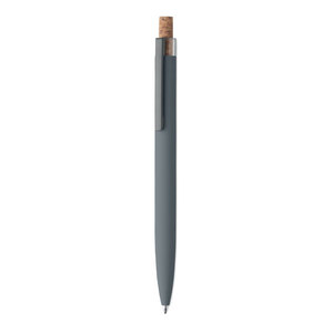 Kuličkové pero z recyklovaného hliníku s korkovým tlačítkem a kovovým klipem. Modrý inkoust.