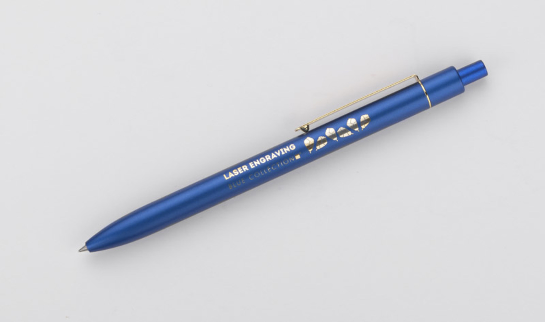 Stylová hliníková propiska s matnou konečnou úpravou a zlatým klipem.