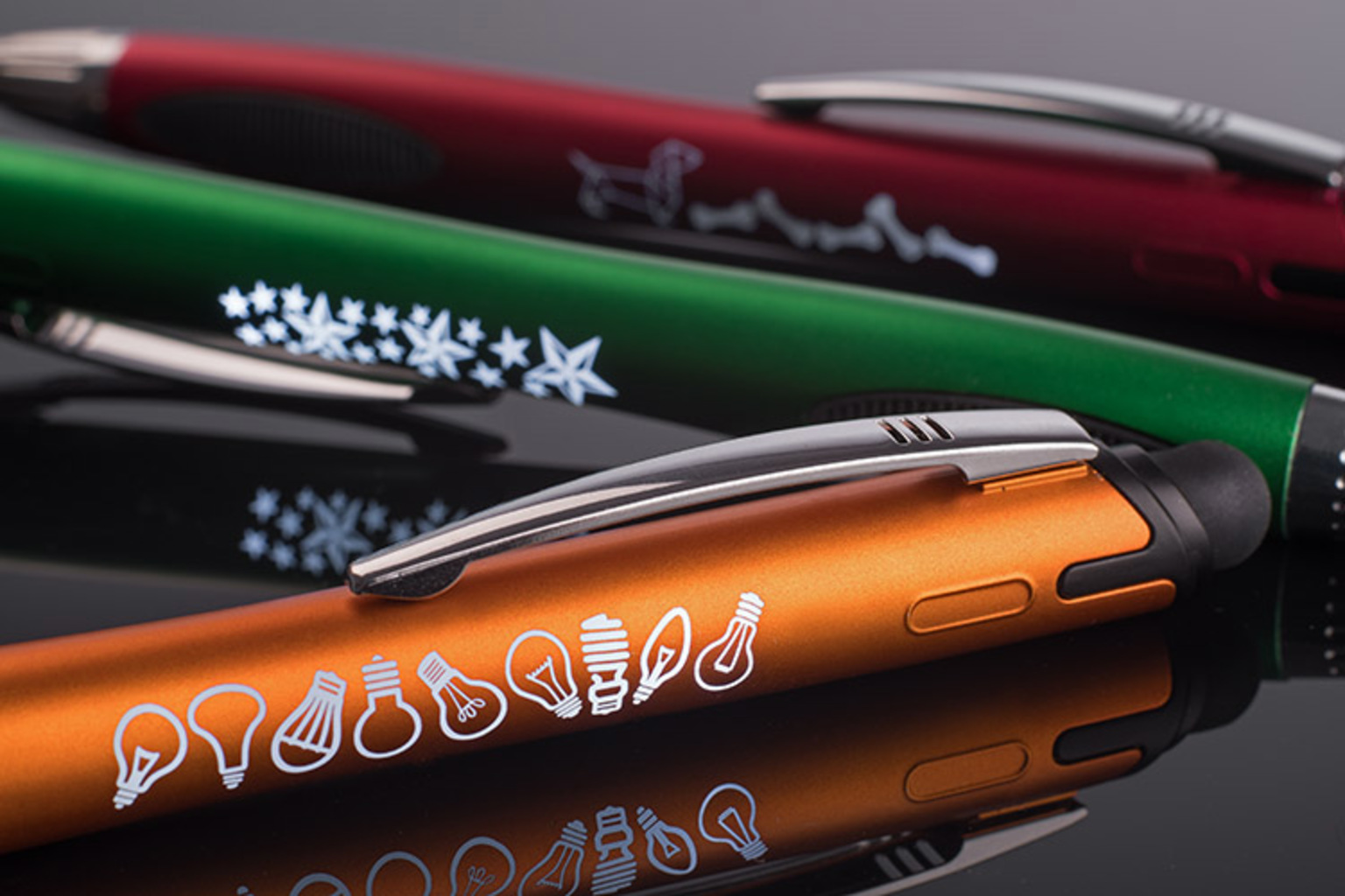 Jednoduché, klasické pero LITT vyrobené z plastu navíc s unikátní funkcí – možností vytváření loga osvětleného zevnitř. Modrá náplň.