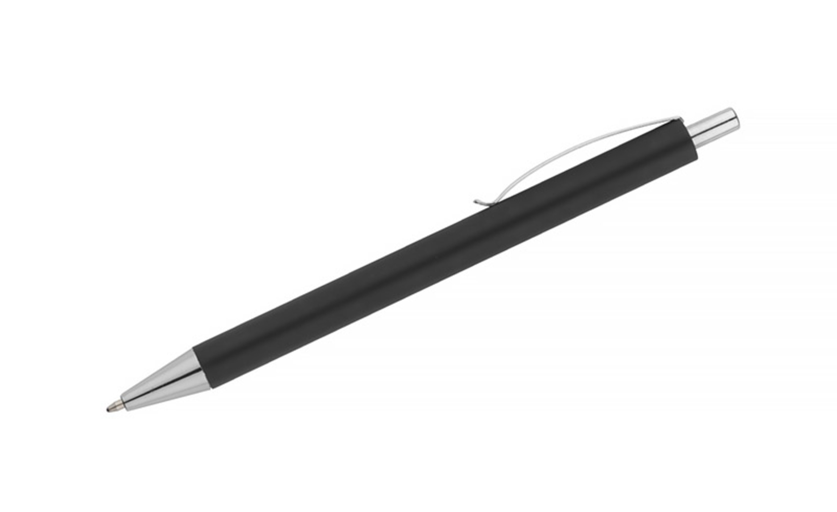 Propiska NOVI s příjemným na dotek gumovaným povrchem a chromovanými prvky stříbrné barvy. Náplň modré barvy.