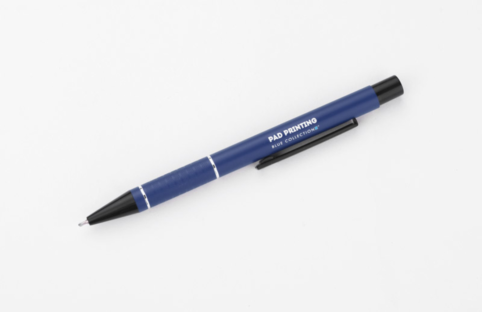 Propiska SATO s černým zdobením je vyrobena z hliníku. Těleso je naspodu zdobeno stříbrnými prsteny a pasy s mírně drsným povrchem. Semi-gelová náplň o tloušťce čáry 0,7 mm. Náplň modré barvy.