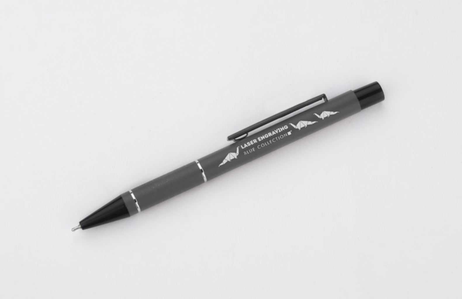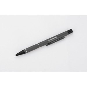 Propiska SATO s černým zdobením je vyrobena z hliníku. Těleso je naspodu zdobeno stříbrnými prsteny a pasy s mírně drsným povrchem. Semi-gelová náplň o tloušťce čáry 0,7 mm. Náplň modré barvy.