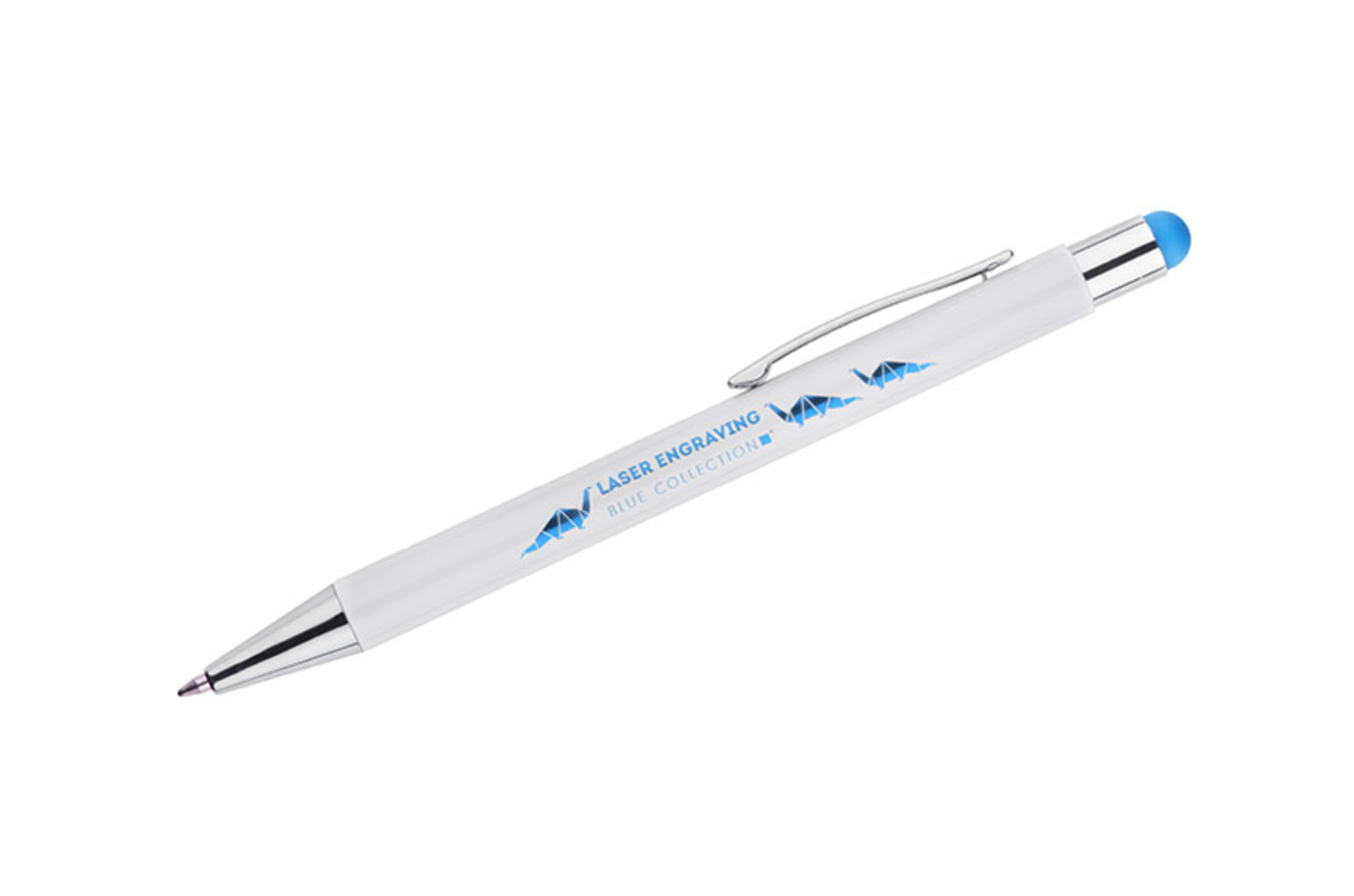 BIANCO je propiskou, která překvapuje dojmem značkování. Barva gravíru je podobná barvě části touch pro práci s dotykovým displejem. Těleso je vyrobeno z hliníku natřeného bílou barvou. Automatická propiska. Náplň typu G2 v modré barvě.