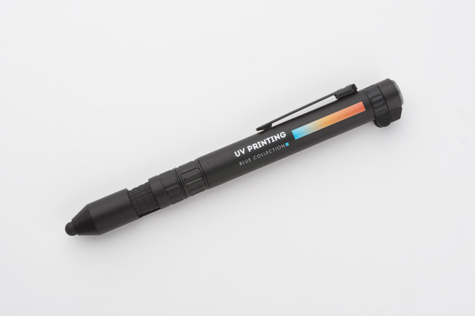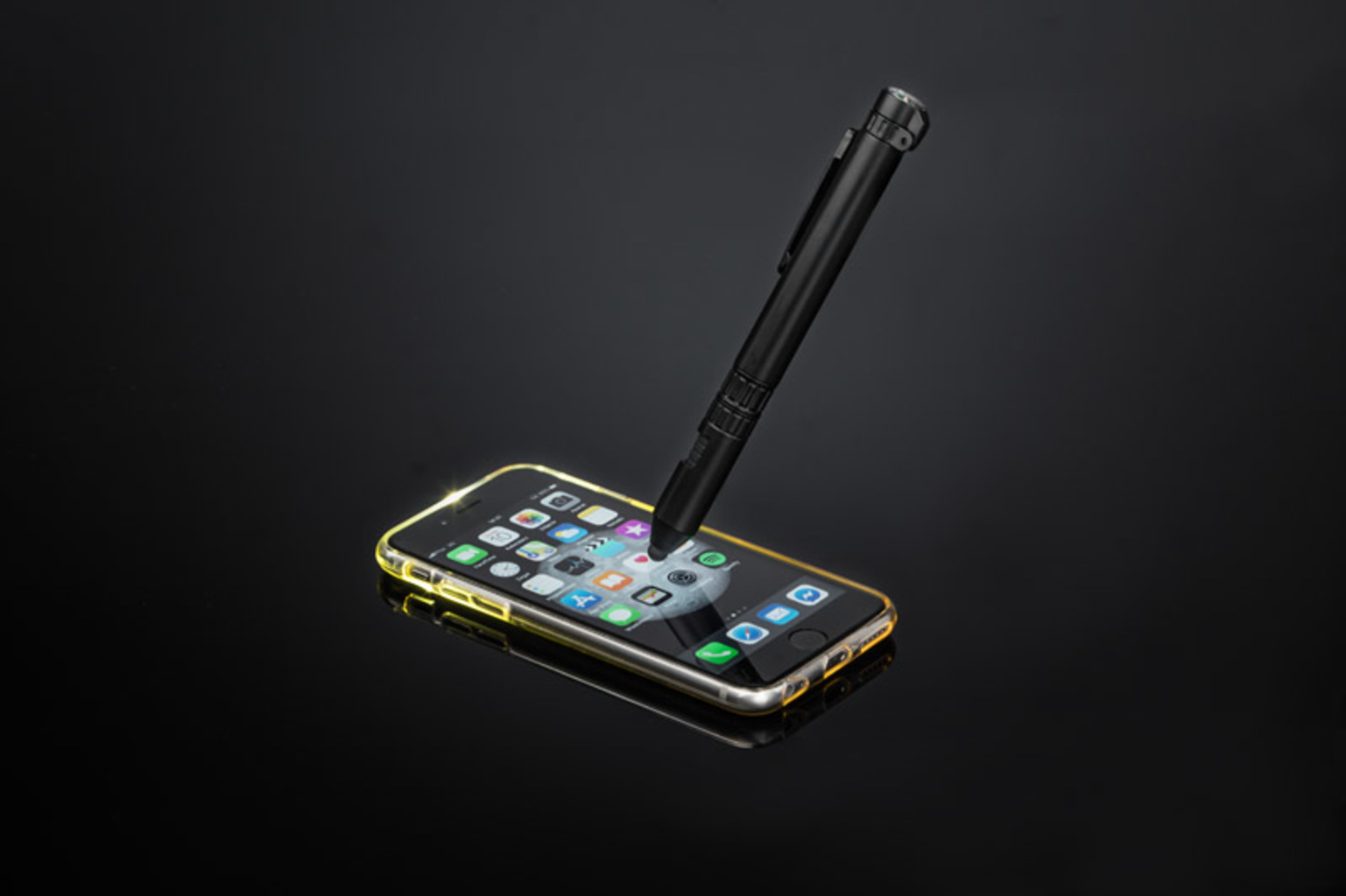 GYVER bude perfektním dárkem pro příznivce serepetiček, kteří očekávají, že reklamní předměty budou vybavené překvapujícími funkcemi. Tento malý předmět je vybaven 7 funkcemi: propiskou, touch penem, stojanem na telefon, baterkou, 2 šroubováky, kompasem. Náplň v modré barvě.