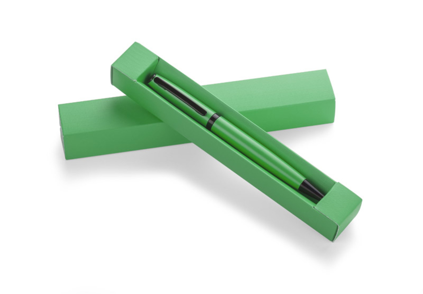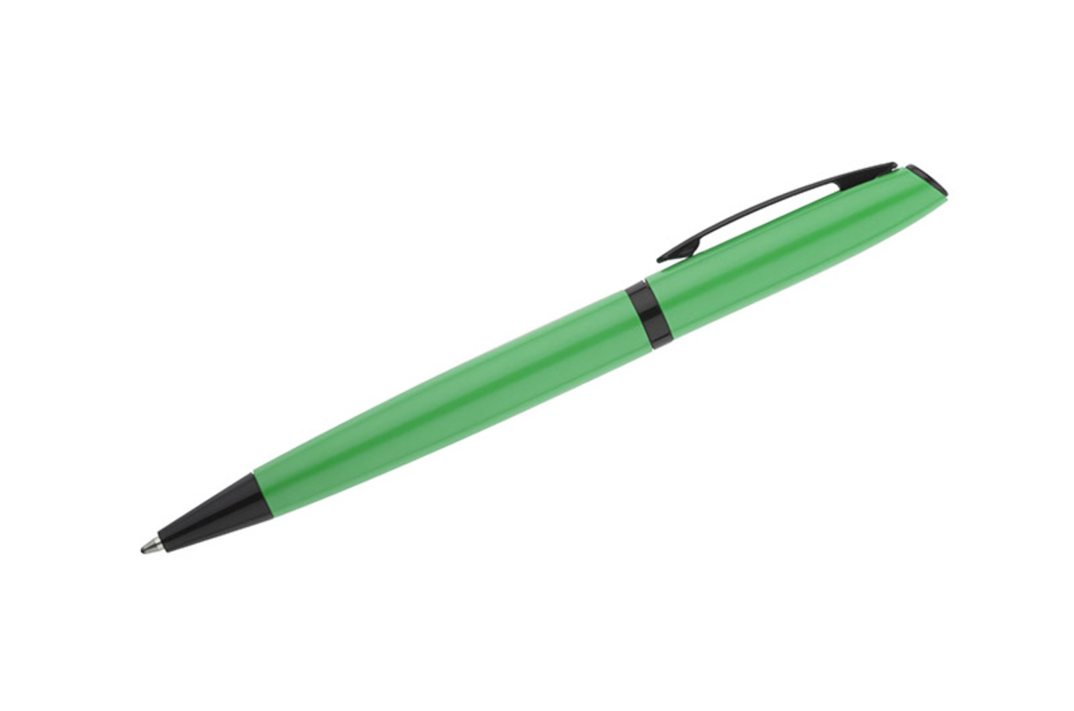 RIO je elegantní propiskou zabalenou do papírové krabičky barevně přizpůsobené krytu propisky. Matná barva hezký kontrastuje s černým zdobením. Propiska se spouštěcím mechanismem typu „twist“, s náplň typu G2 v modré barvě.