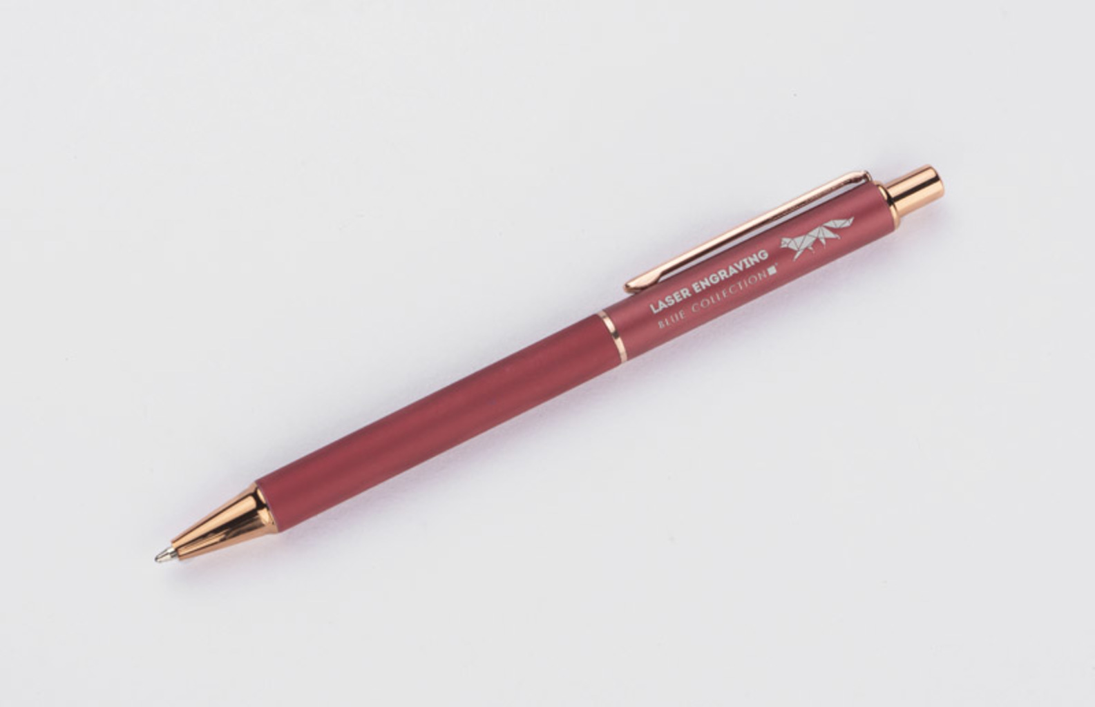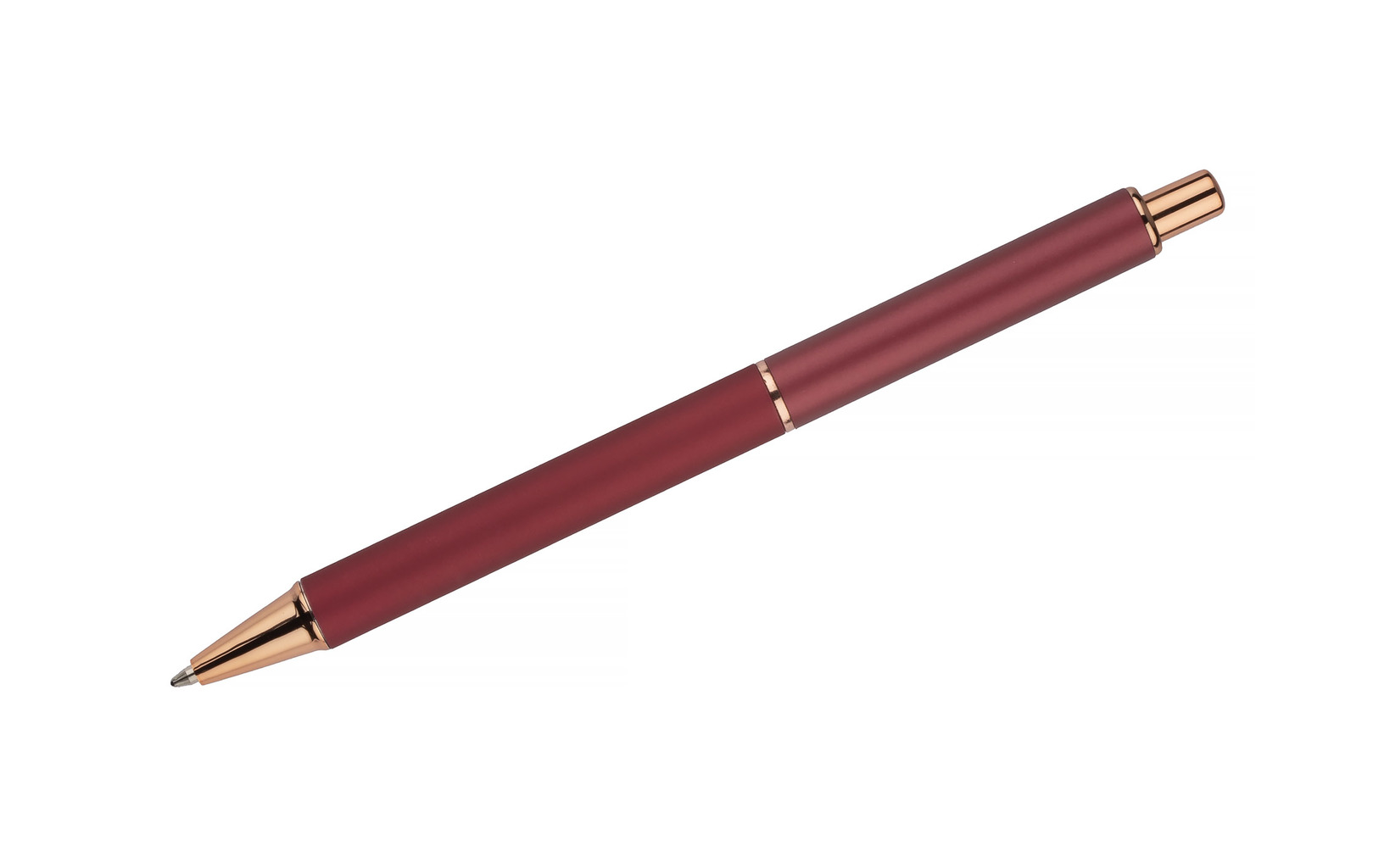 Matová propiska s akcenty v barvě růžového zlata. Těleso a klip jsou vyrobeny z kovu