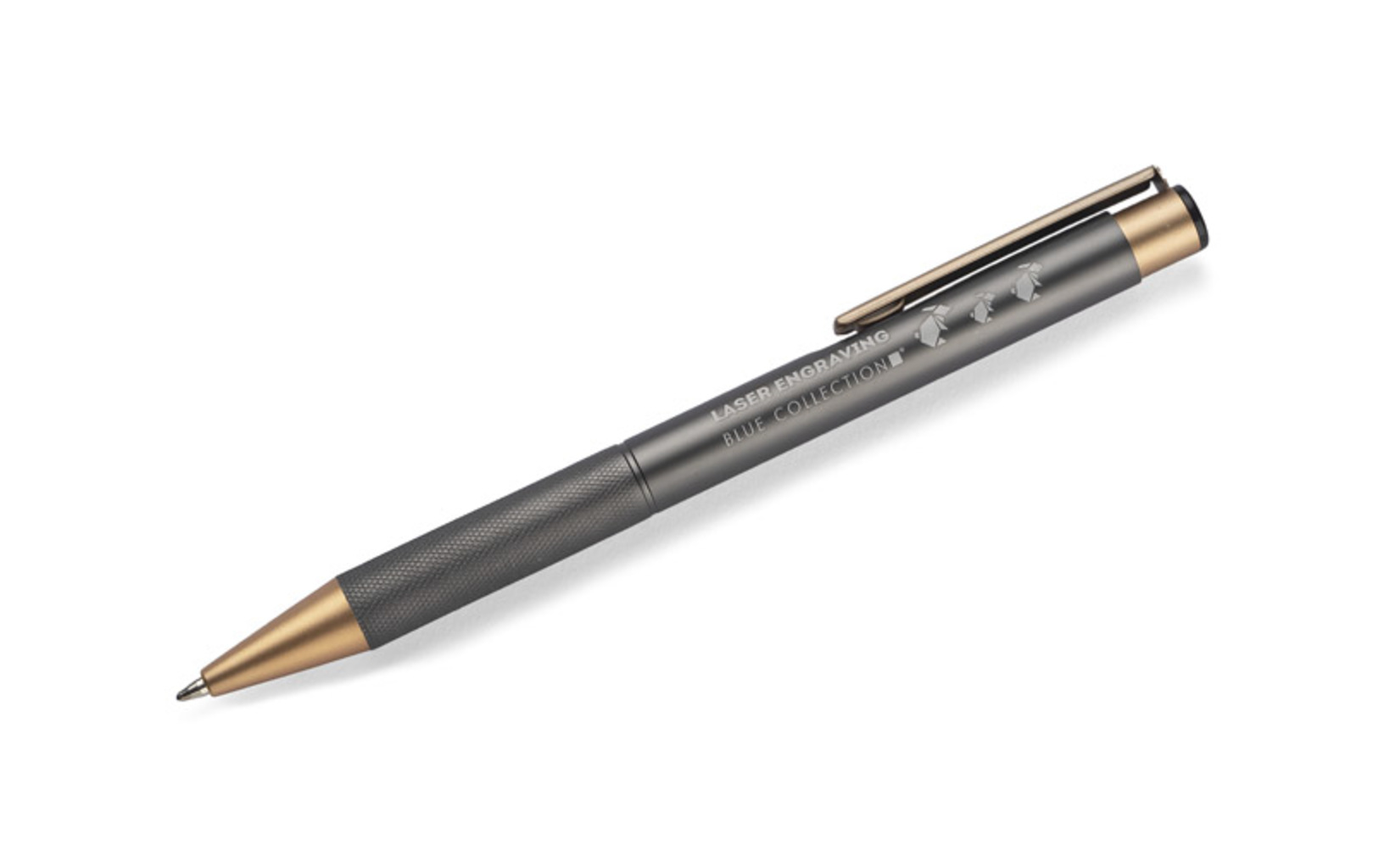 Kuličkové pero VITE je elegantní kovový model s automatickým vysouvacím mechanismem. Tělo v matném provedení kontrastuje s chromovanými detaily a klipem ve zlaté barvě šampaňského. Kuličkové pero má náplň typu G2 s 1,0 mm pologelovým inkoustem pro hladké a rovnoměrné psaní. Díky své robustní konstrukci a pečlivému zpracování je ideálním propagačním gadgetem pro ty, kteří oceňují moderní design a přesné psaní.