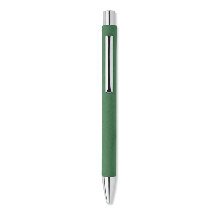 Tlačítkové kuličkové pero z recyklovaného papíru a s kováním. Modrý inkoust.