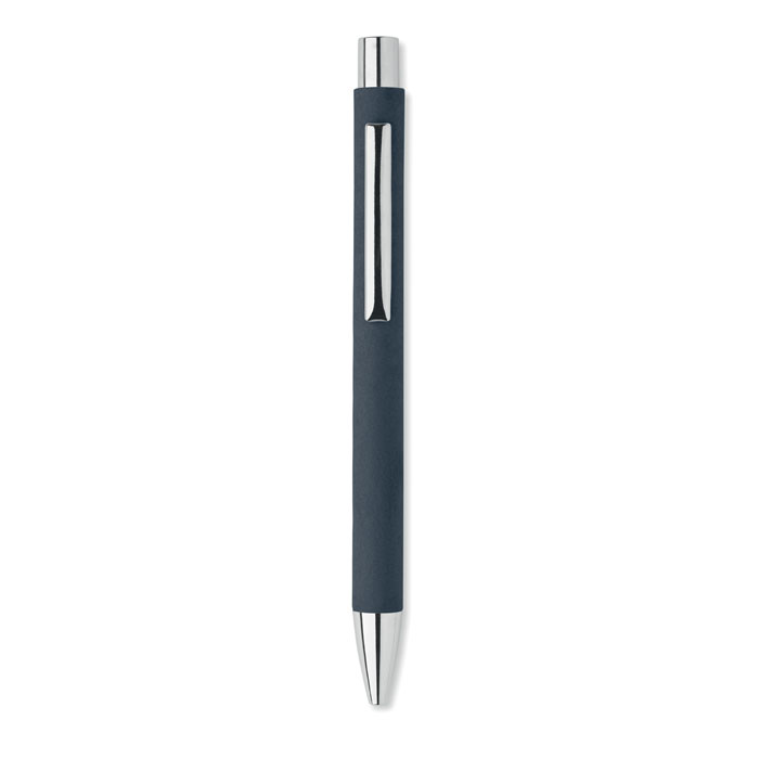 Tlačítkové kuličkové pero z recyklovaného papíru a s kováním. Modrý inkoust.
