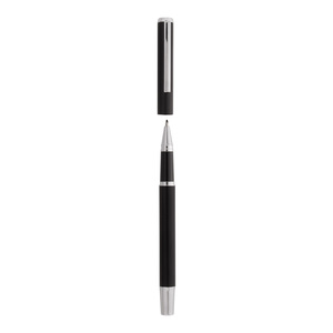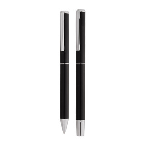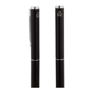 Sada pera z recyklovaného hliníku s rollerem a kuličkovým perem v černé papírové dárkové krabičce. S modrou náplní.