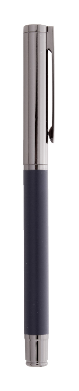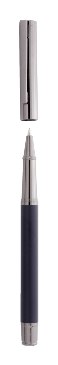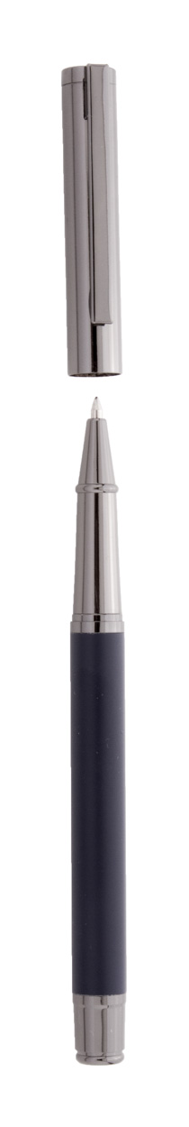 Elegantní sada kovového pera s kuličkovým perem a rollerem v černé papírové dárkové krabičce. S modrou náplní.