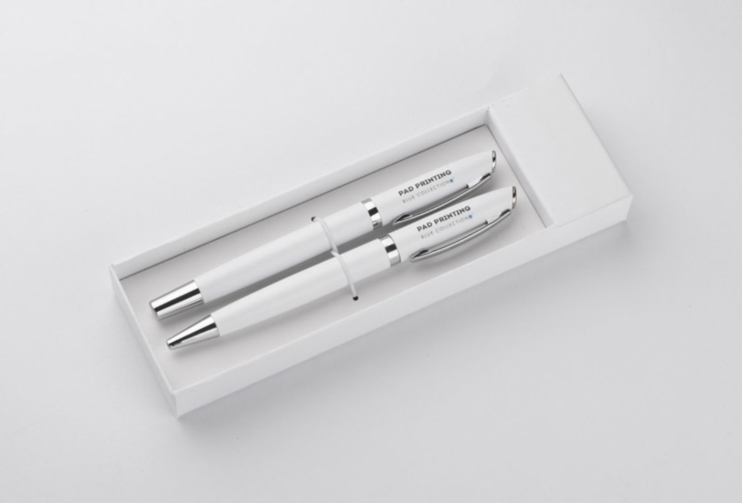 Psací souprava COLORADO se skládá z propisky a kuličkového pera zabalených do krabičky barevně přizpůsobené ke kompletu. Psací potřeby vyrobené z kovu, pouzdro ze silného kartonu potažené barevným papírem. Jeho charakteristickou vlastností jsou živé, módní barvy. Propiska s mechanismem typu twist. Náplň pera a propisky v modré barvě.