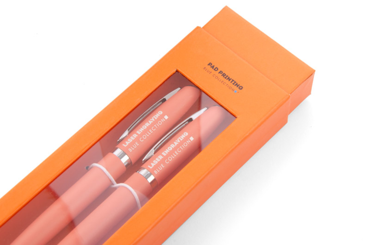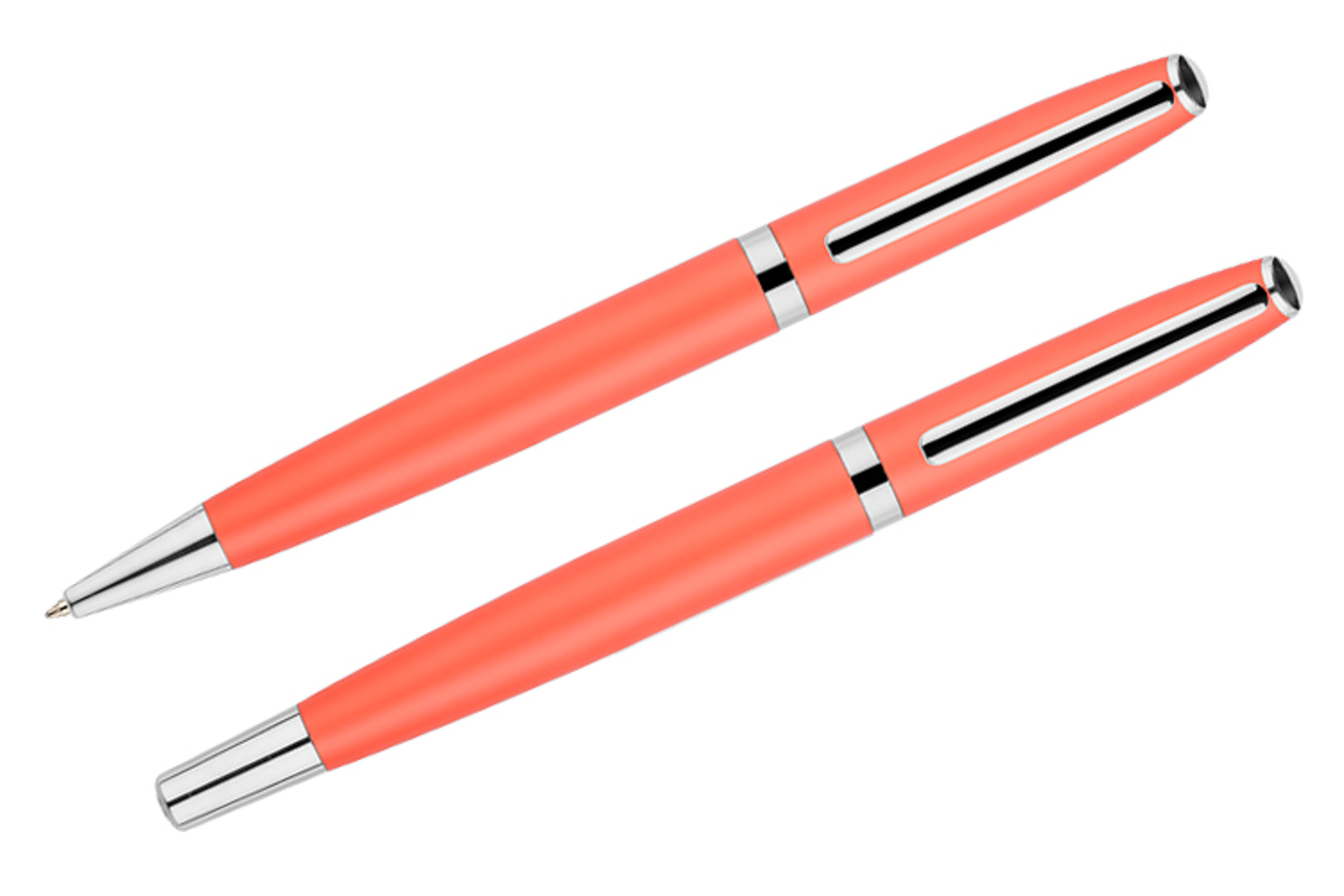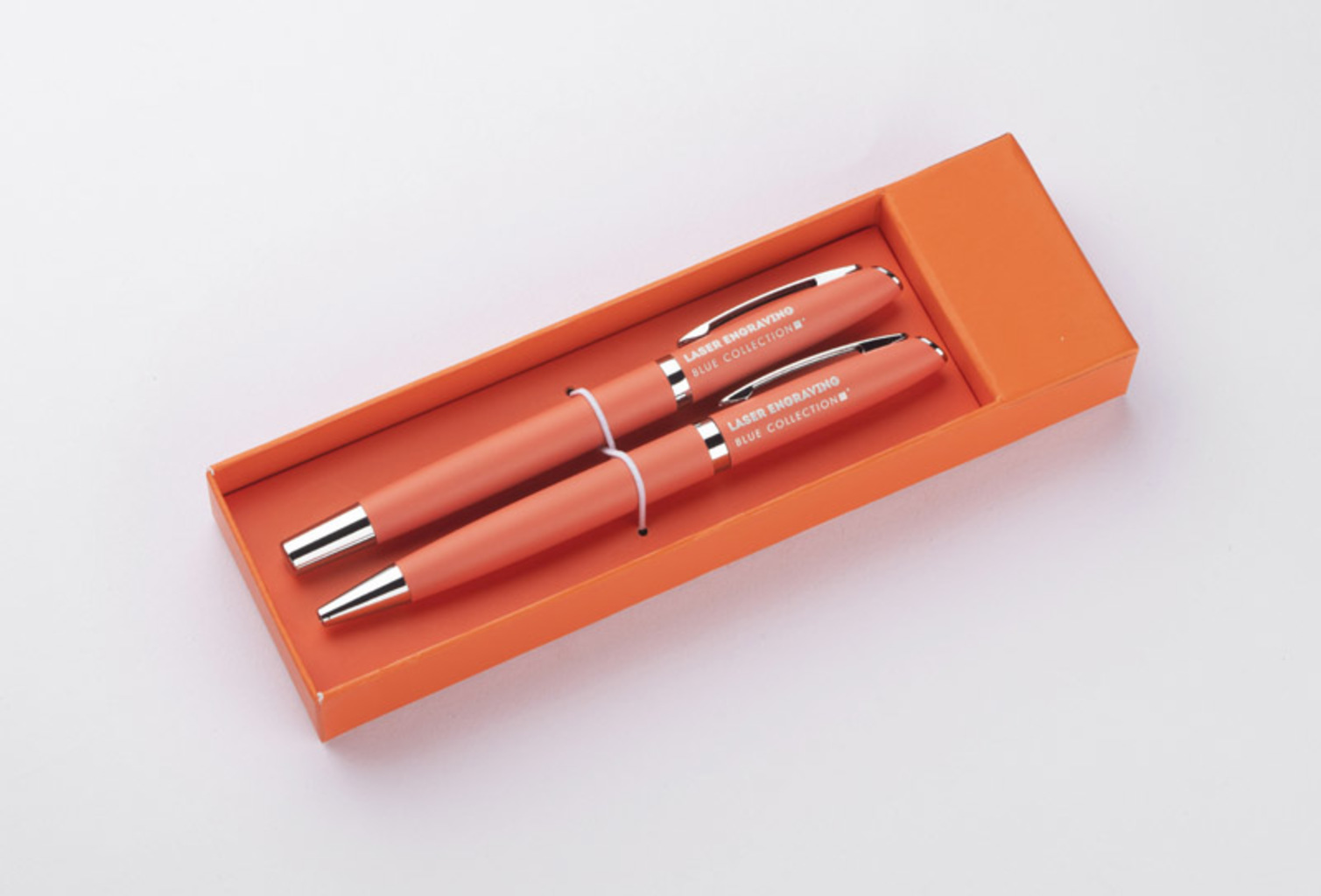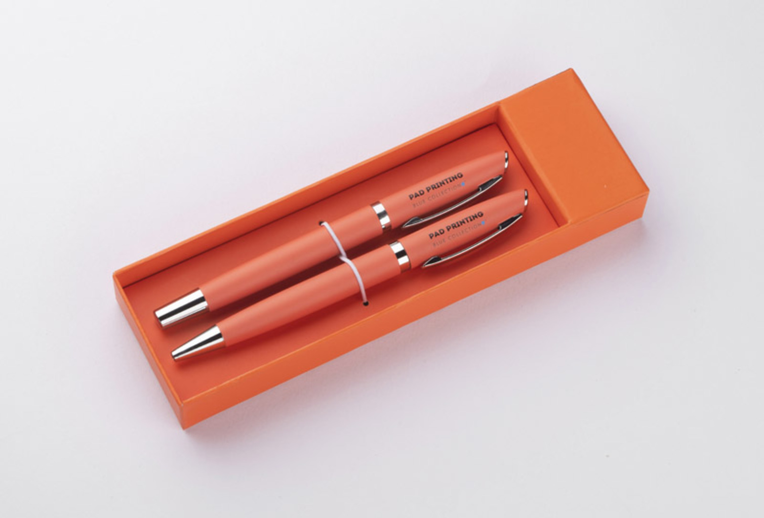 Psací souprava COLORADO se skládá z propisky a kuličkového pera zabalených do krabičky barevně přizpůsobené ke kompletu. Psací potřeby vyrobené z kovu, pouzdro ze silného kartonu potažené barevným papírem. Jeho charakteristickou vlastností jsou živé, módní barvy. Propiska s mechanismem typu twist. Náplň pera a propisky v modré barvě.