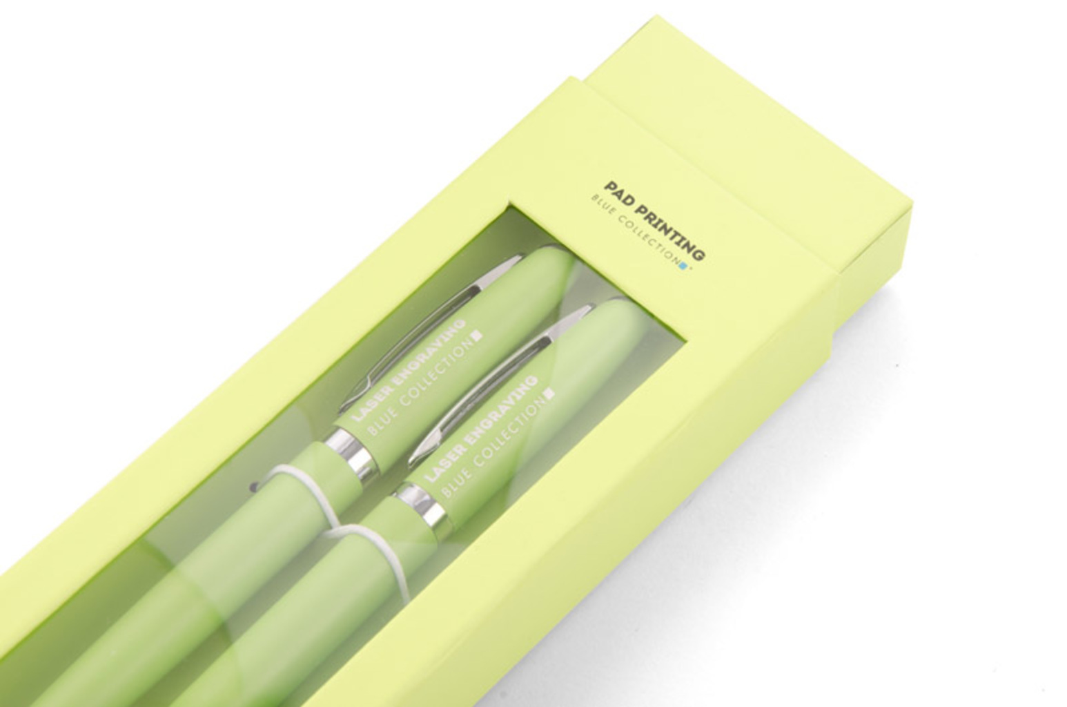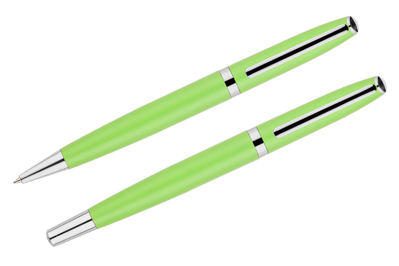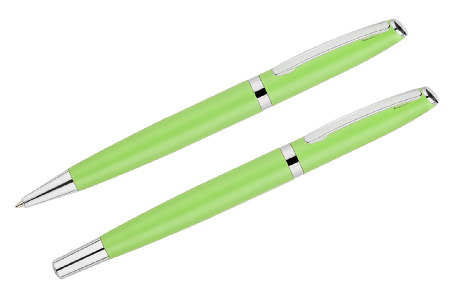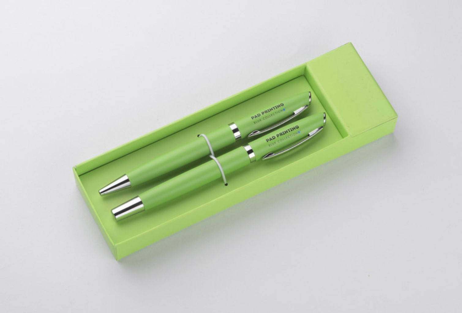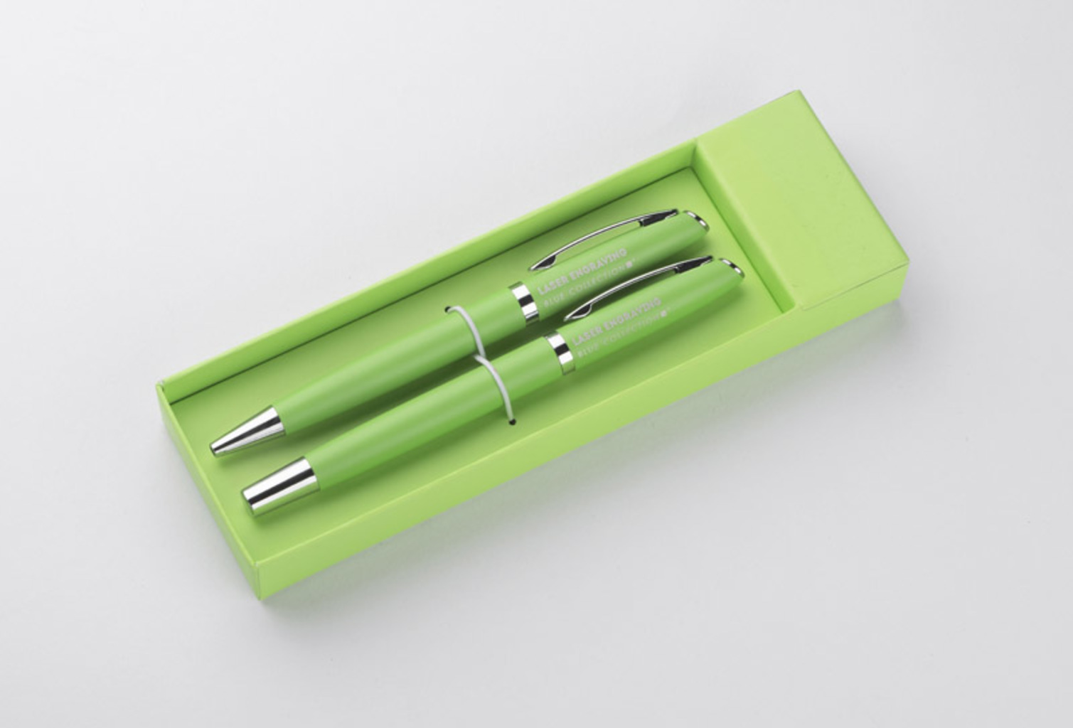 Psací souprava COLORADO se skládá z propisky a kuličkového pera zabalených do krabičky barevně přizpůsobené ke kompletu. Psací potřeby vyrobené z kovu, pouzdro ze silného kartonu potažené barevným papírem. Jeho charakteristickou vlastností jsou živé, módní barvy. Propiska s mechanismem typu twist. Náplň pera a propisky v modré barvě.