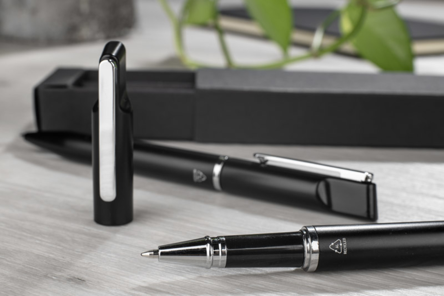 Psací souprava EFAN je stylová souprava sestávající z pera a birosu vyrobená z recyklovaného hliníku. Oba kusy mají štíhlý černý design s matným povrchem a jemnými stříbrnými detaily. Pero je dodáváno s modrým hrotem a biros s černým hrotem, obojí s tloušťkou psacího náčiní 1,0 mm a délkou až 500 metrů. Vše je zabaleno v černé kraftové papírové krabičce.