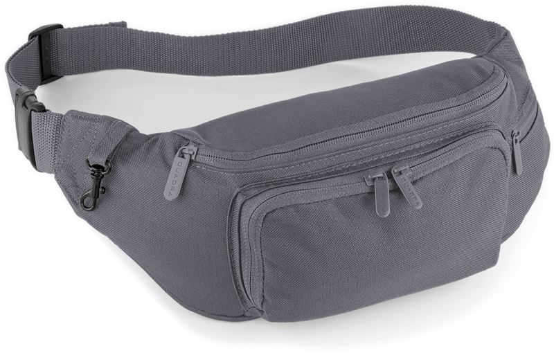 Nastavitelný bederní popruh, několik kapes se zipem, karabina, objem 2l, rozměry: 37x15x10cm, pouze čistit houbičkou, nesmí se prát