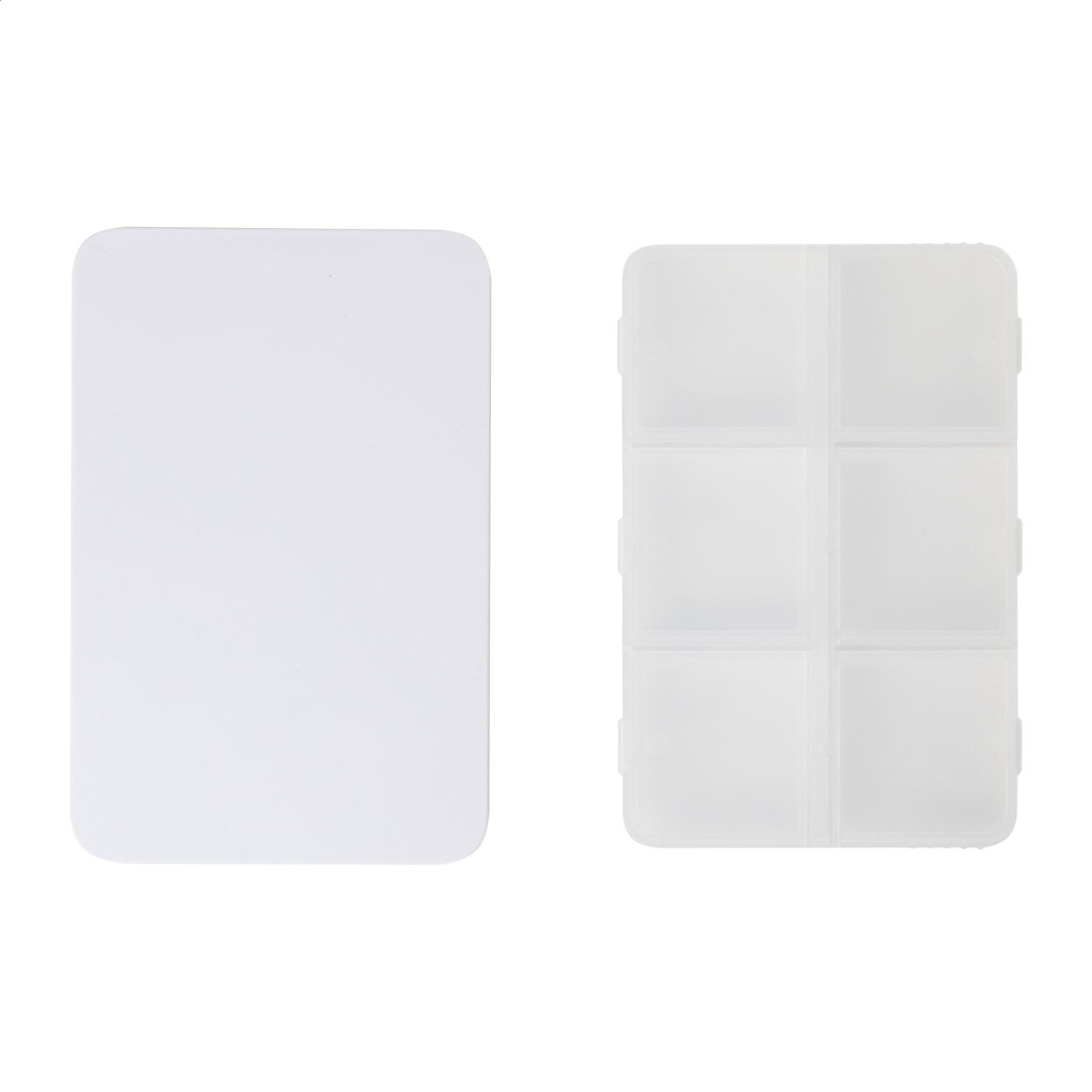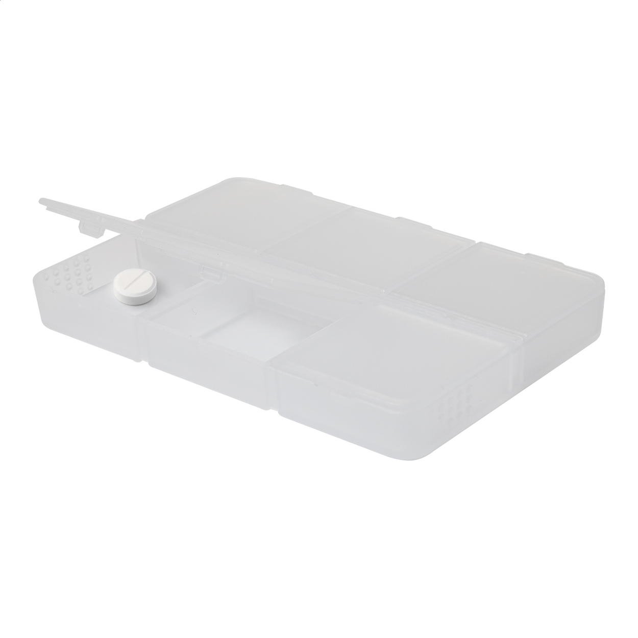 Box na pilulky z recyklovaného ABS plastu se 6 přihrádkami.