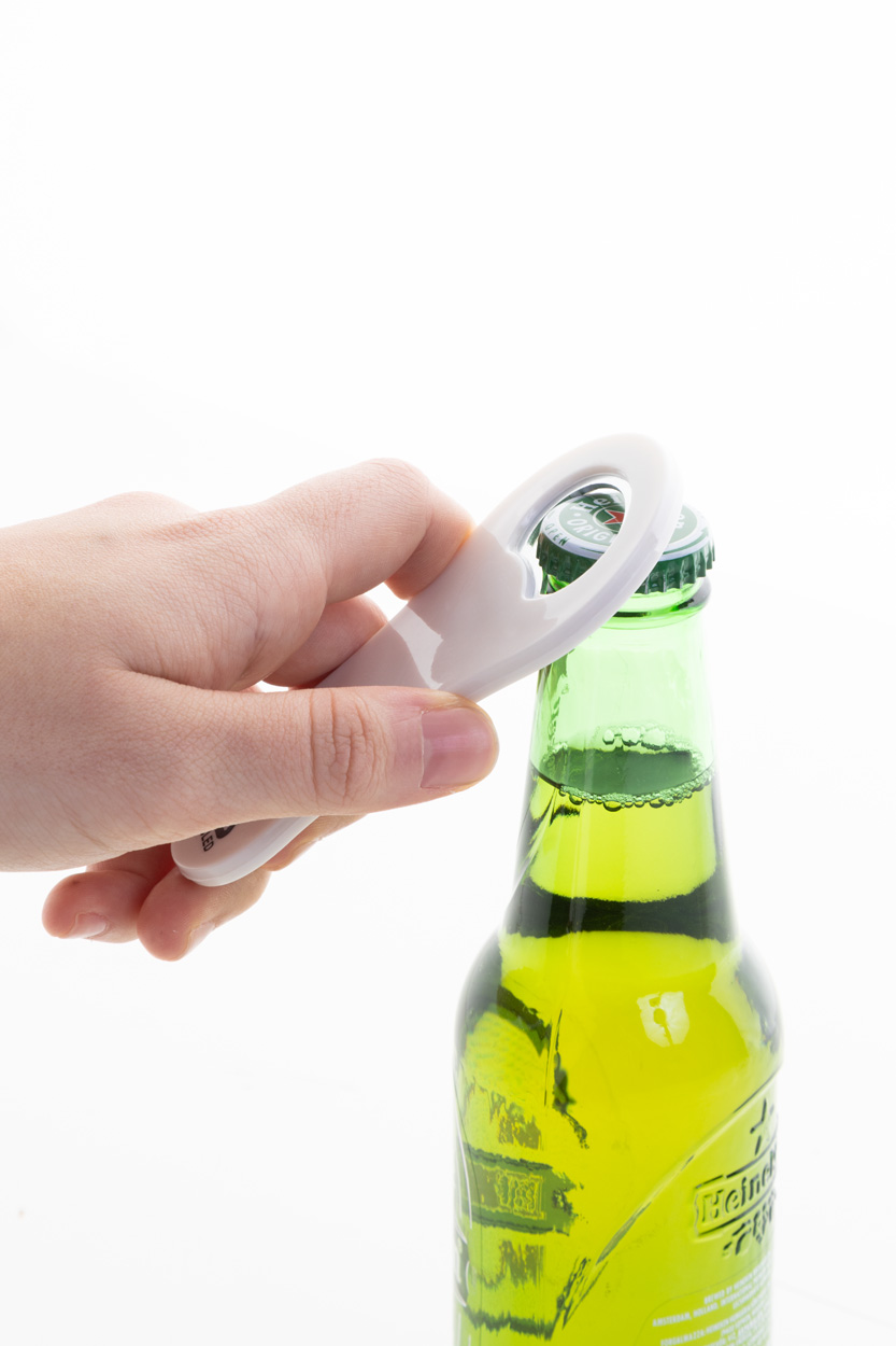 Otvírák na láhve z recyklovaného ABS plastu s magnetem na lednici.
