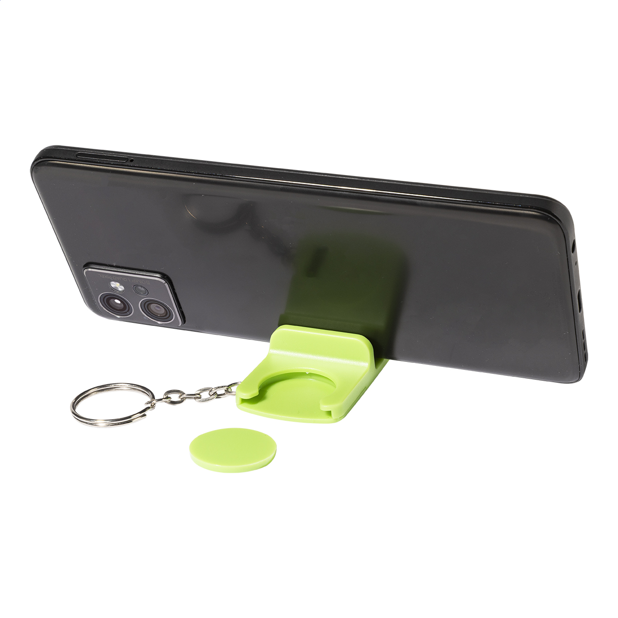 Přívěsek klíče se žetonem do košíku z recyklovaného ABS materiálu s držákem na mobilní telefon. Velikost mince: ø23×2 mm.