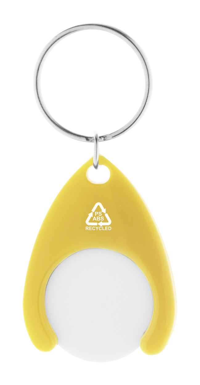 Přívěšek na klíče z recyklovaného ABS plastu s mincí do nákupního vozíku a kovovým kroužkem. Velikost mince: ø24×2 mm.