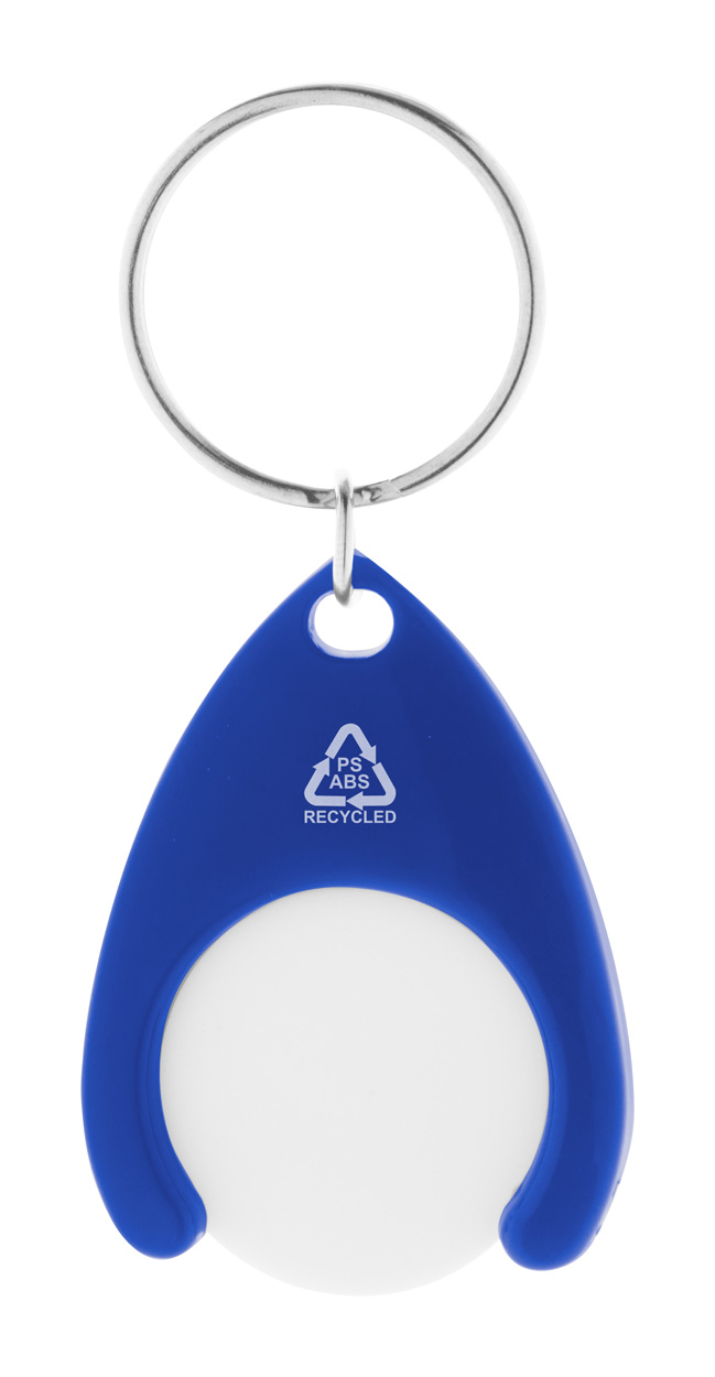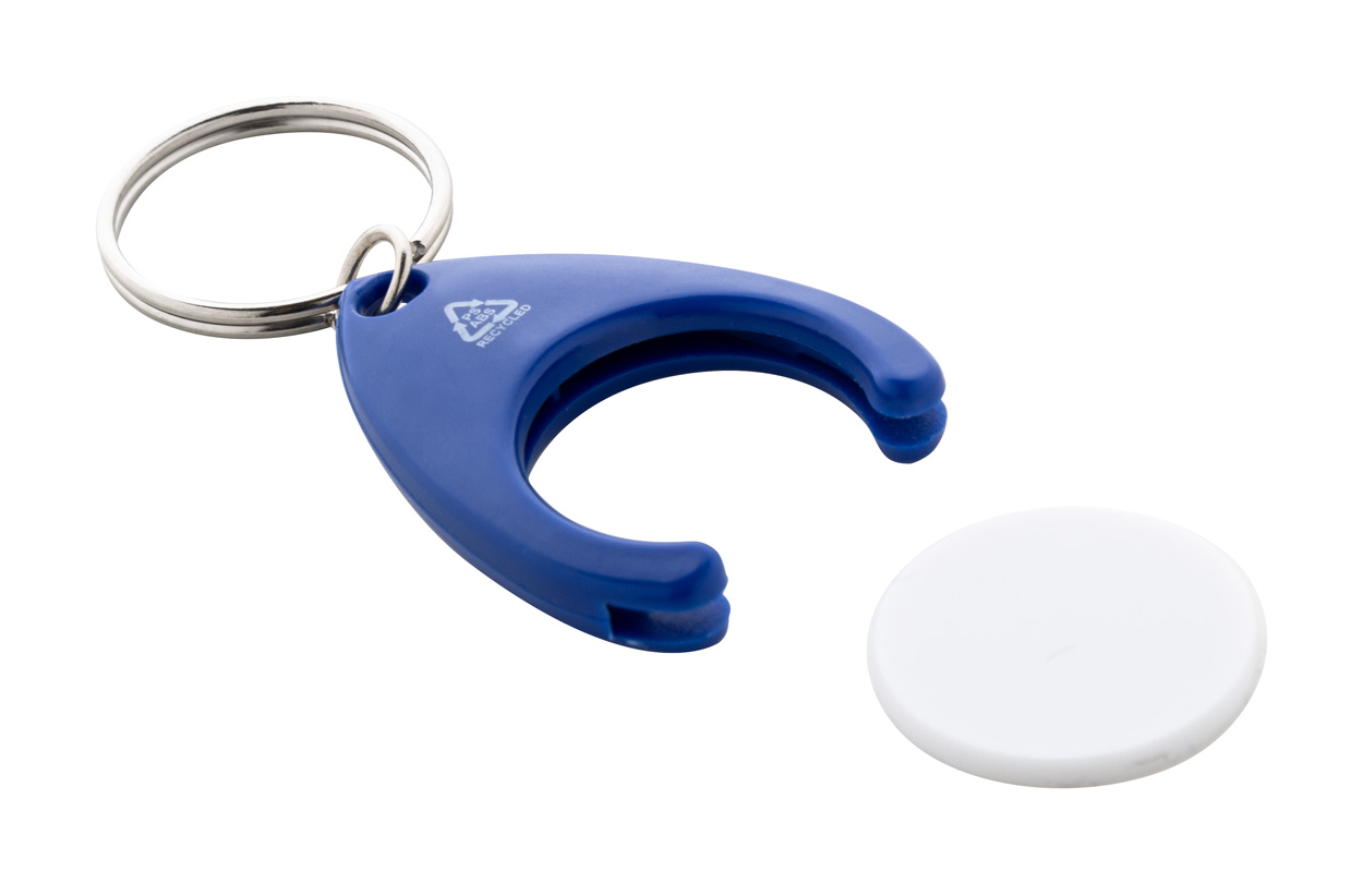 Přívěšek na klíče z recyklovaného ABS plastu s mincí do nákupního vozíku a kovovým kroužkem. Velikost mince: ø24×2 mm.