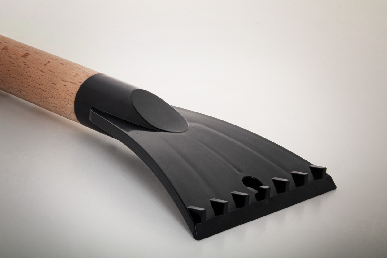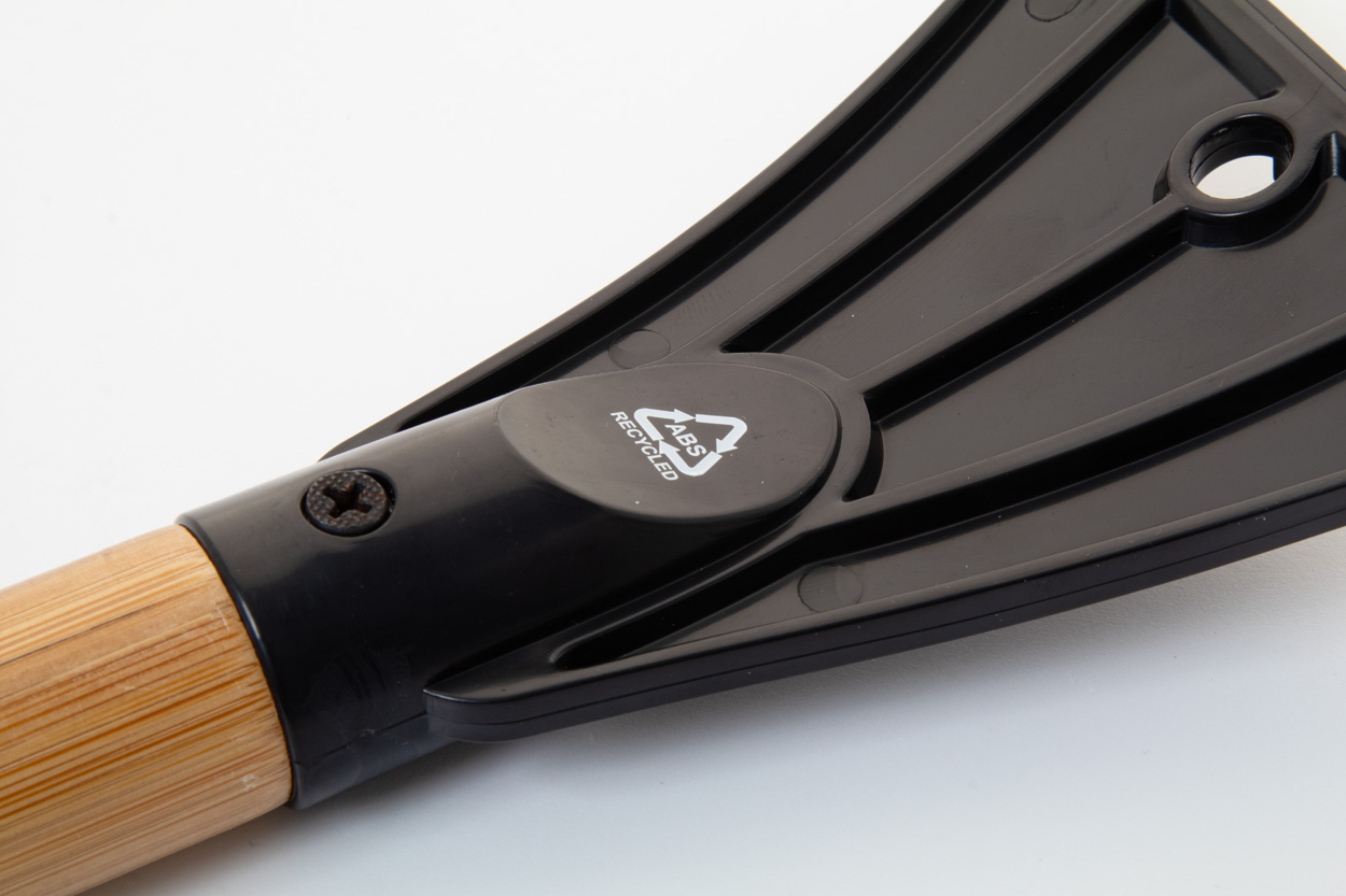Recyklovaná ABS škrabka na led s kartáčem a bambusovou rukojetí.