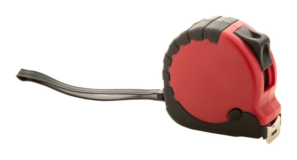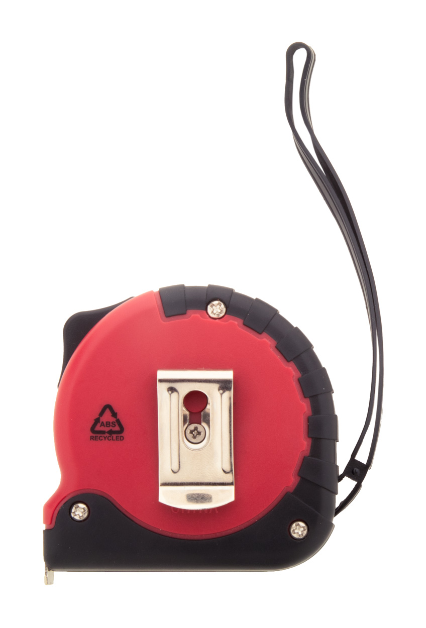 Svinovací metr z recyklovaného ABS plastu s funkcí zámku, kovovou sponou a páskem na ruku, 5m.