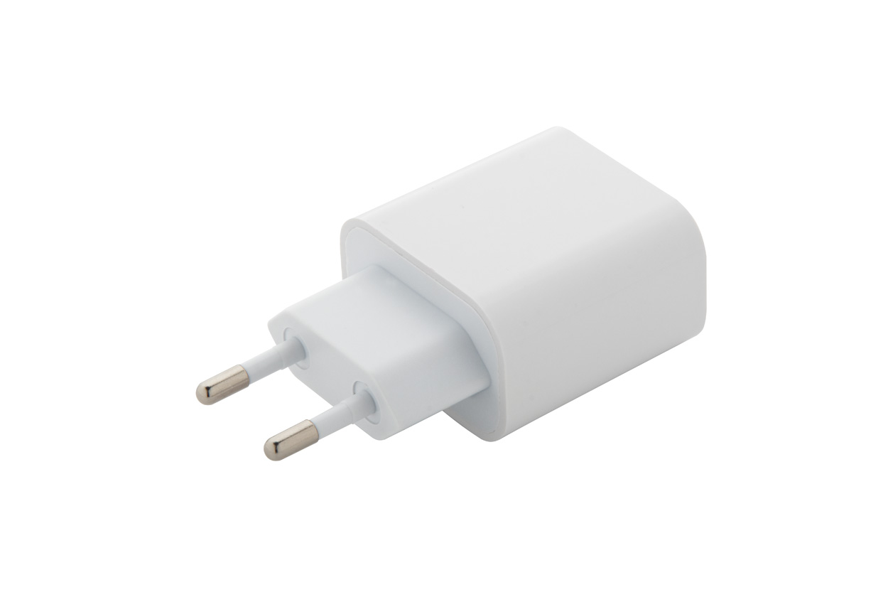 Recyklovaná ABS rychlonabíjecí USB nástěnná nabíječka s 1 USB a 1 USB-C portem. Podporuje technologii rychlého nabíjení (PD20W / QC3.0). S 2-pólovou evropskou zástrčkou.