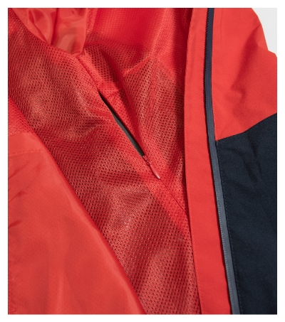 lehký voděodolný materiál s membránou, úprava BIONIC FINISH® ECO zabraňující průniku vody, rovný střih s bočními díly, voděodolný zip zakončený krytkou brady, odnímatelná kapuce na stažení šňůrkou, lemy rukávů nastavitelné suchým zipem, boční kapsy s reverzním spirálovým zipem, vnitřní náprsní kapsa na suchý zip, podlepené švy, vstup pro branding v bočním švu podšívky, tvarovaný a mírně prodloužený zadní díl , dolní okraj stažený pruženkou v boční části, odvětrávání v zadní části , reflexní prvky