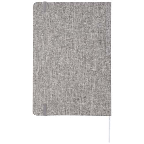 Zápisník formátu A5 s pevnou vazbou vyrobený z recyklované bavlny s 80 linkovanými listy papíru o gramáži 70 g/m². Zápisník má elastické zapínání, stuhu a zaoblené rohy.
