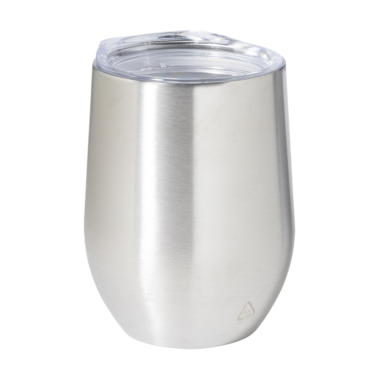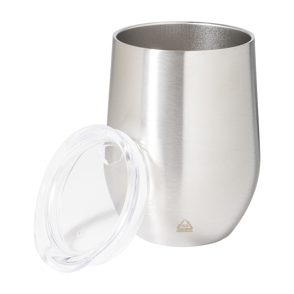 Dvoustěnný termo hrnek z recyklované nerezové oceli s plastovým víčkem na pití. 350 ml.