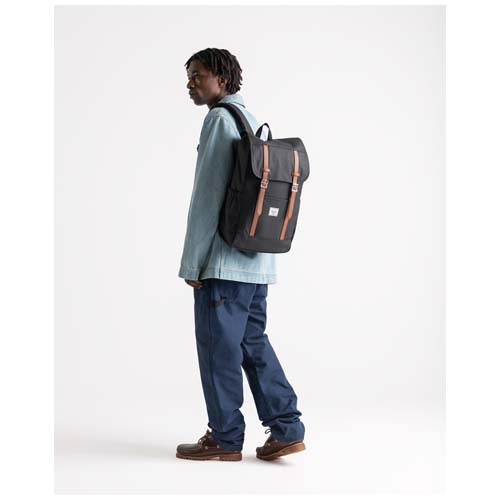 Batoh Herschel Retreat™ — nezbytný společník pro vaši každodenní cestu. Disponuje množstvím kapes a je vyrobený z udržitelných materiálů EcoSystem™. Tento batoh byl navržen tak, aby uschoval vaše věci a úhledně uspořádal vaše každodenní nezbytnosti. Látka 600D je důmyslně vyrobena ze 100% recyklovaných spotřebitelských láhví na vodu a nabízí odolné a ekologické řešení. Vnitřní pouzdro je luxusně polstrované a podšité fleecem pro uložení vašeho 15"/16" notebooku. Batoh má snadné zapínání na stahovací šňůrku ve tvaru U, pohodlný zadní zip a dvě kapsy na láhve s vodou, které se dají elegantně roztáhnout, aby vyhovovaly různým velikostem. Batoh Herschel Retreat™ se může pochlubit prostornou kapacitou 23 l, která zajišťuje, že vše, co potřebujete, budete mít na dosah.