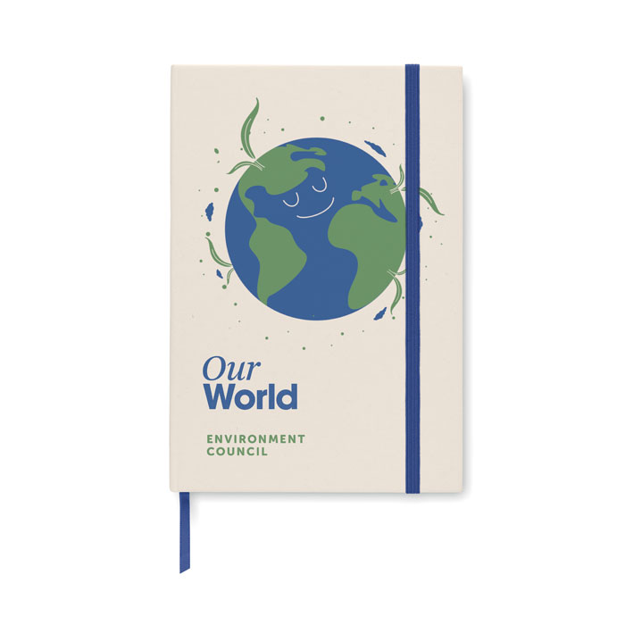 Zápisník A5 s tvrdými deskami vyrobenými ze 70 % z recyklovaných kartonů od mléka a 30 % z recyklovaného papíru. Má 160 linkovaných stránek (80 listů 80 g/m2) a pevnou vazbu. Uzavírací gumička a záložka ze stuhy.