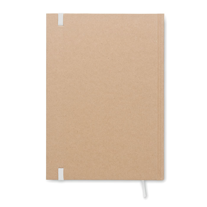 Zápisník A5 s tvrdými deskami z recyklovaného kartonu. 200 linkovaných stran (100 listů) z recyklovaného papíru (80 g/m2). Odpovídající elastický uzavírací pásek a záložka. Vyrobeno v EU.