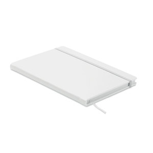Zápisník A5 s tvrdými deskami z PU. 200 linkovaných stran (100 listů) z recyklovaného papíru (80 g/m2). Odpovídající elastický uzavírací pásek a záložka. Vyrobeno v EU.