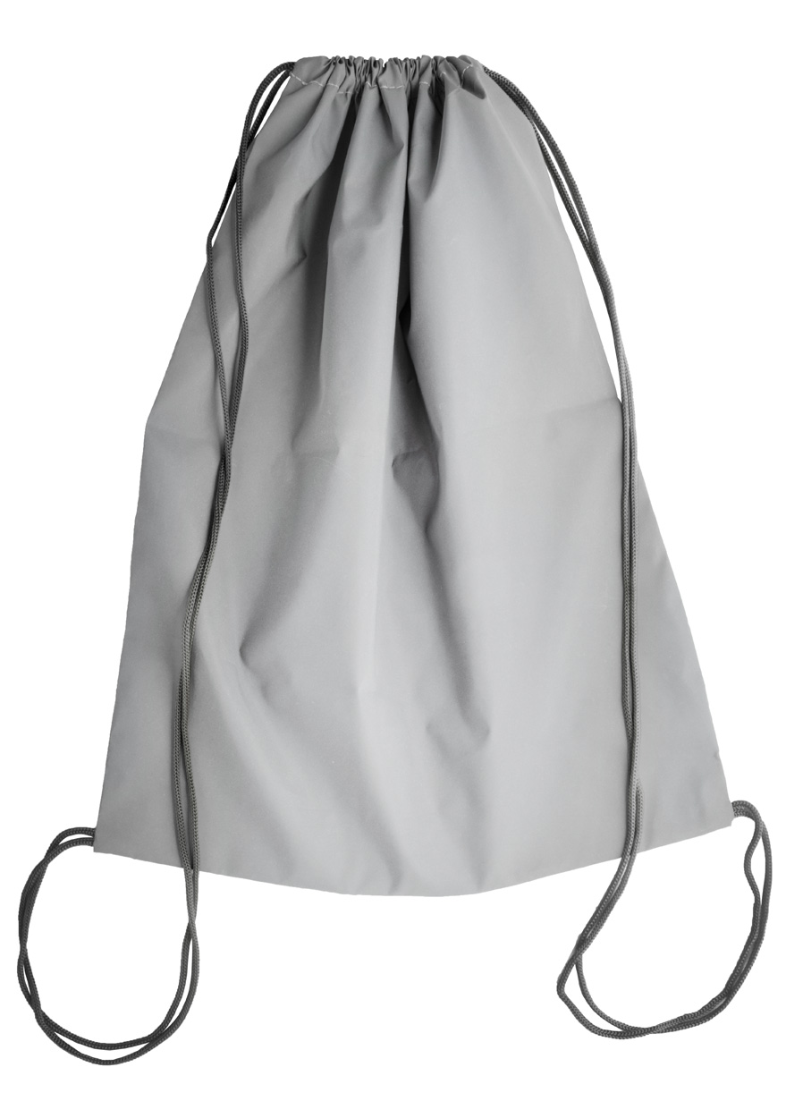 Reflexní polyesterový vak na stažení šňůrkou. Celý povrch vaku je vyroben z reflexního materiálu.