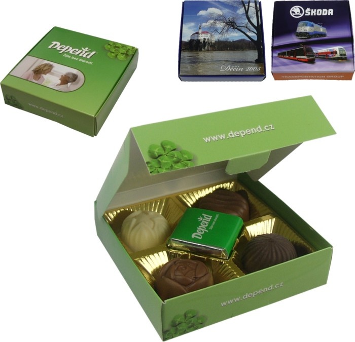 Reklamní bonboniéra 49 g, jednodruhové pralinky + 1 ks reklamní čokolády