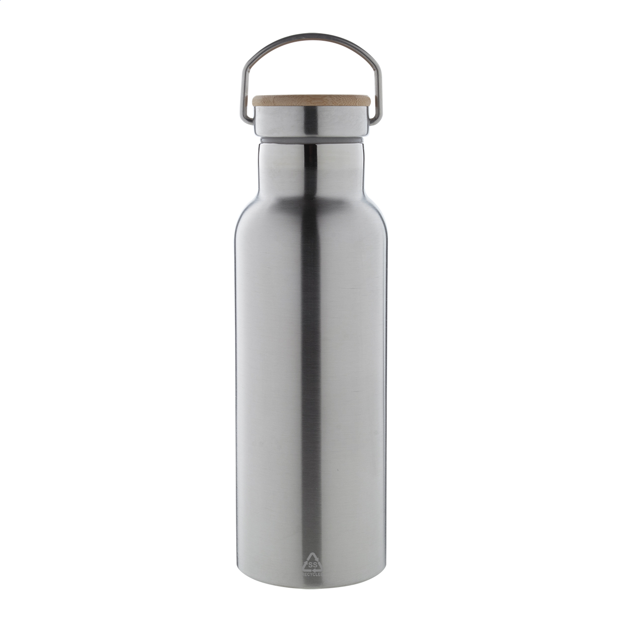 Dvoustěnná vakuově izolovaná termoska z recyklované nerezové oceli s bambusovým víčkem. 500 ml.