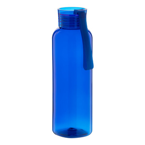 Láhev RPET s víčkem v odpovídající barvě a silikonovým popruhem, 500 ml. Nevhodné pro sycené nápoje.