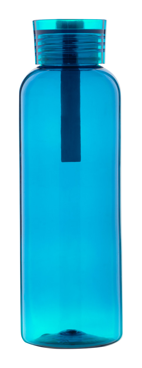Láhev RPET s víčkem v odpovídající barvě a silikonovým popruhem, 500 ml. Nevhodné pro sycené nápoje.