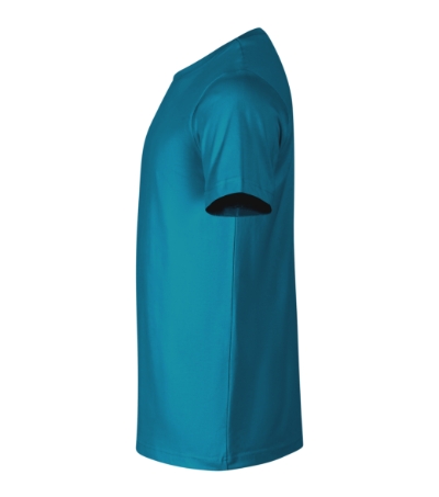 předsrážená bavlna odolná vyšším teplotám, pratelné na 95 °C (bílé) a 60 °C (barevné), střih s bočními švy, průkrčník lemován žebrovým úpletem 1:1, zpevnění ramenních švů páskou