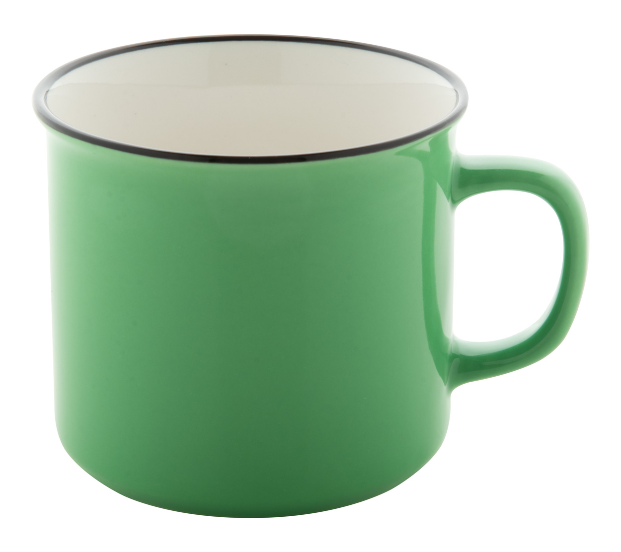 Retro barevný keramický hrnek s černým okrajem, bílým vnitřkem a barvou z venku, 300 ml, v dárkové krabičce.