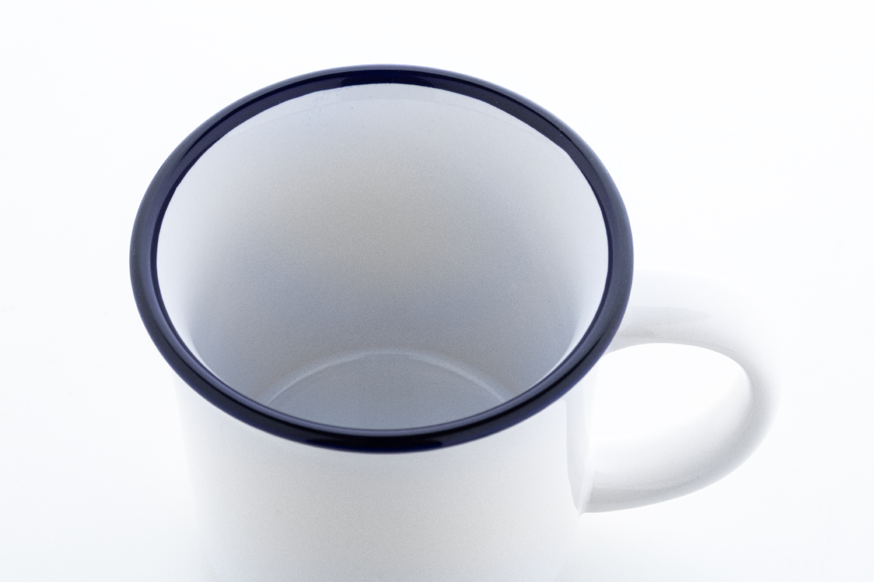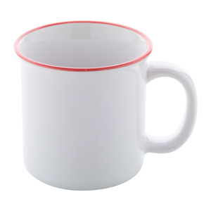 Retro keramický hrnek pro sublimační potisk s barevným okrajem, 300 ml, v dárkové krabičce.