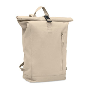 Rolovací batoh se zapínáním na suchý zip z 390g recyklované bavlny (80 %) a recyklovaného polyesteru (20 %). Přední kapsa na zip.