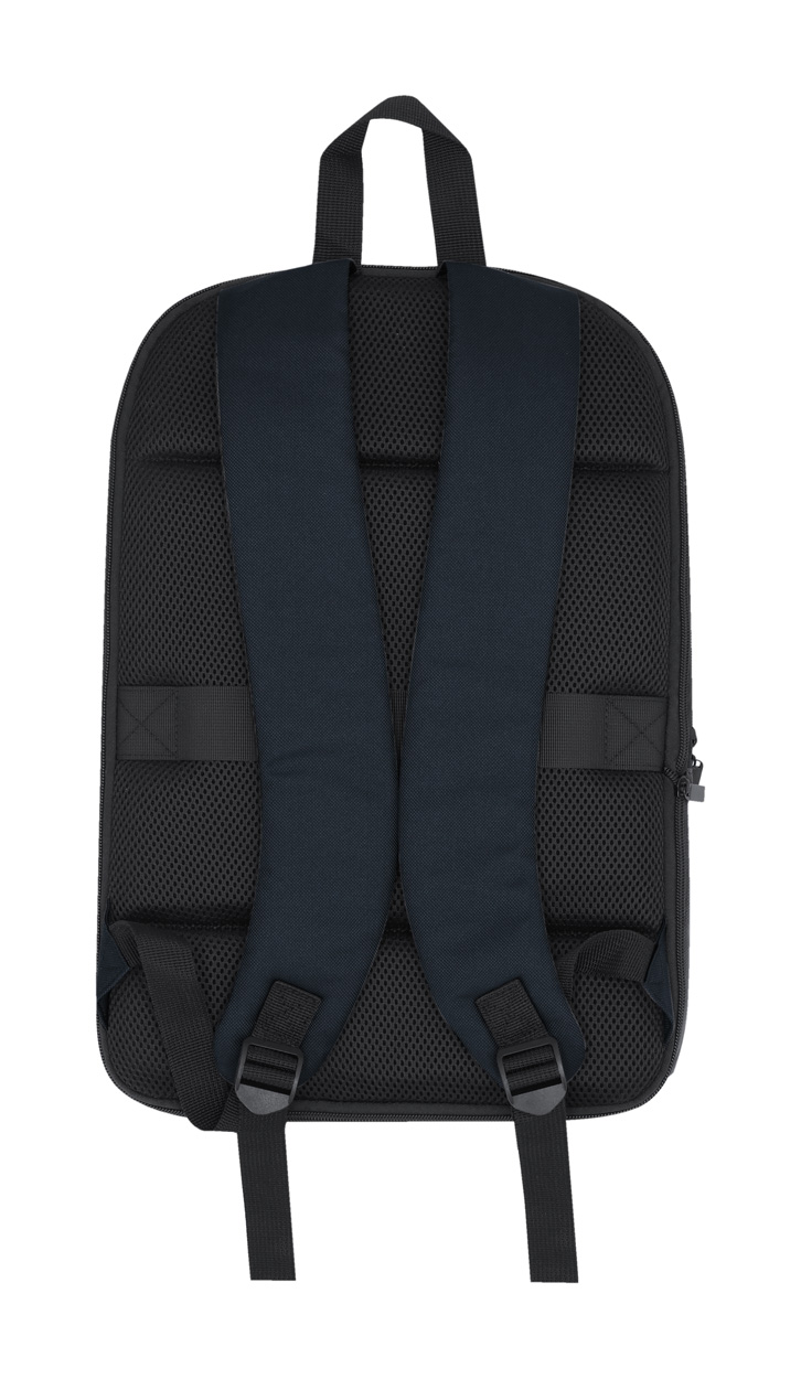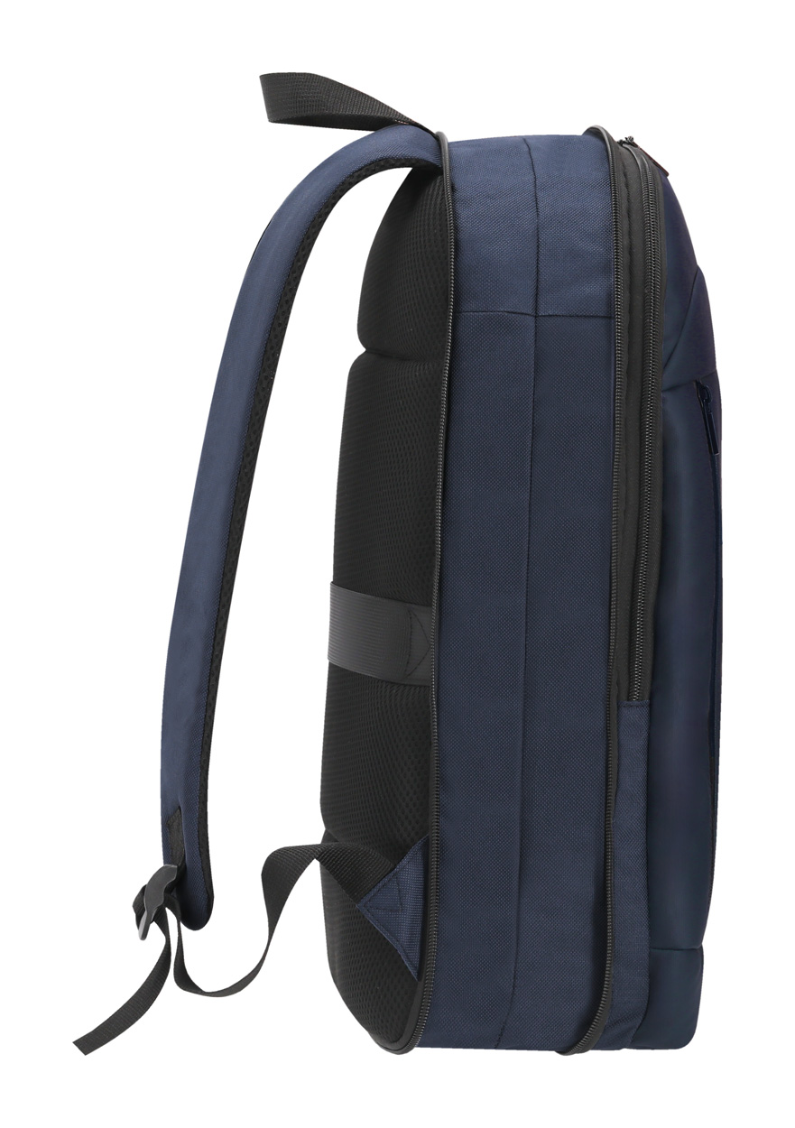 Rozšiřitelný batoh z měkké PU kůže a 900D polyesteru s přihrádkou na zip, polstrovanou přihrádkou na notebook (15"), polstrovanými zády a ramenními popruhy.