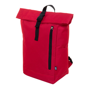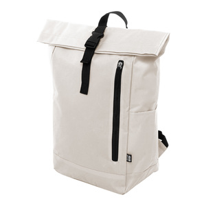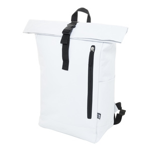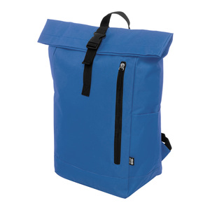 Rolovací batoh RPET se zapínáním na přezku, přihrádkou na notebook (14") a přední kapsou na zip. S polstrovanými zády a ramenními popruhy. Polyester 600D RPET s výrazným štítkem RPET.