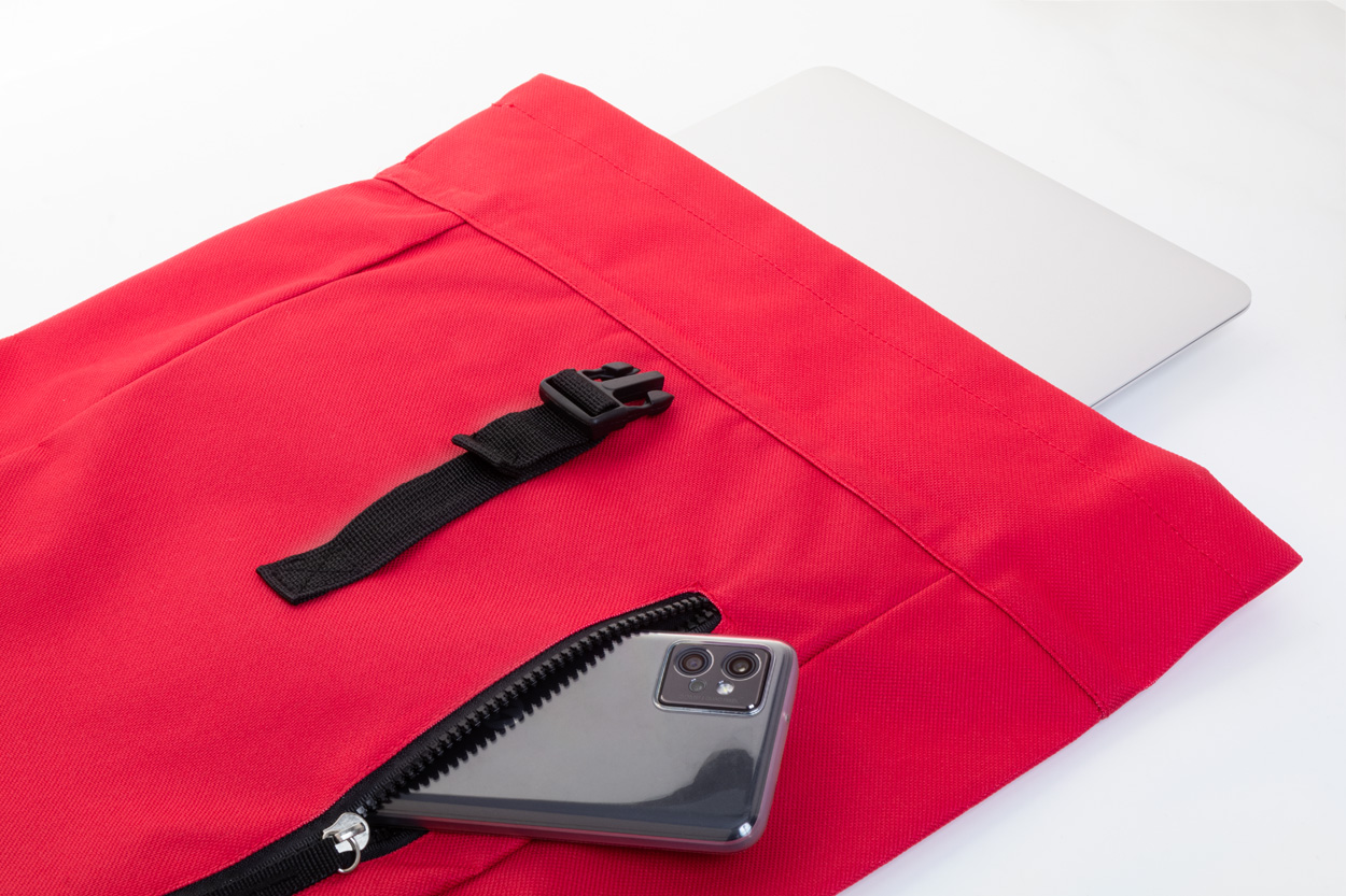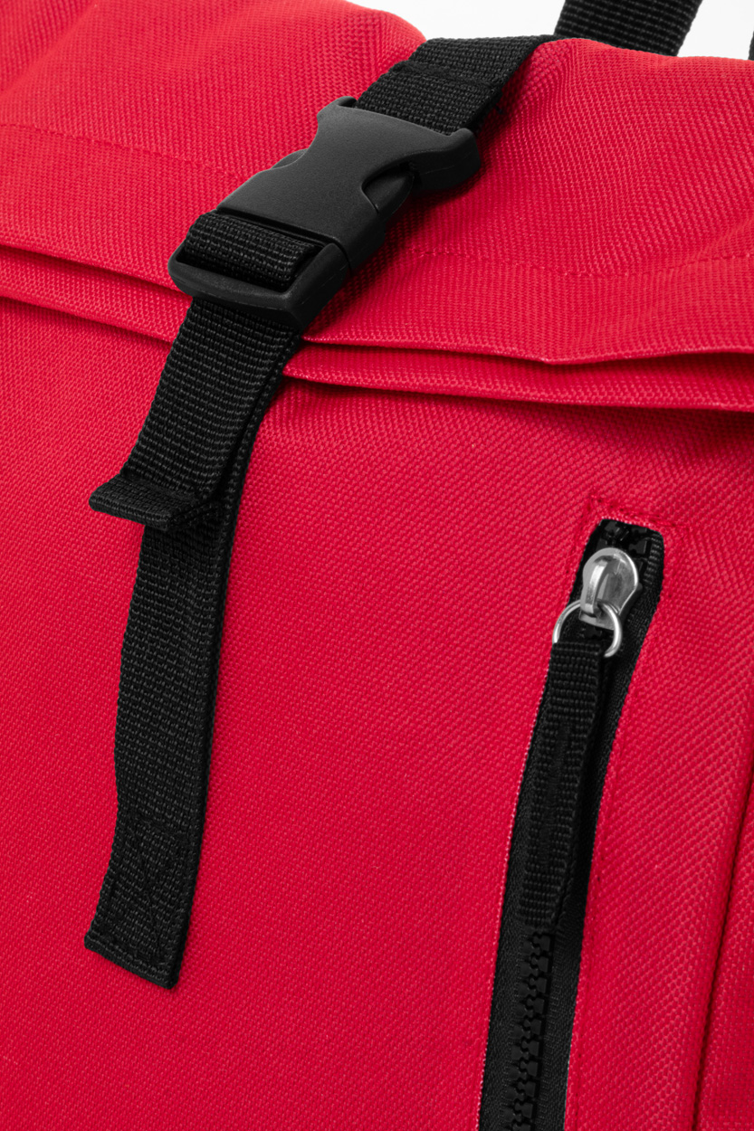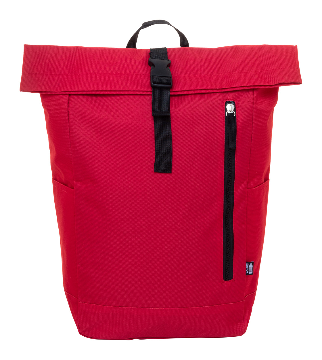 Rolovací batoh RPET se zapínáním na přezku, přihrádkou na notebook (14") a přední kapsou na zip. S polstrovanými zády a ramenními popruhy. Polyester 600D RPET s výrazným štítkem RPET.