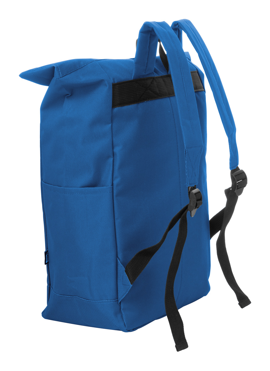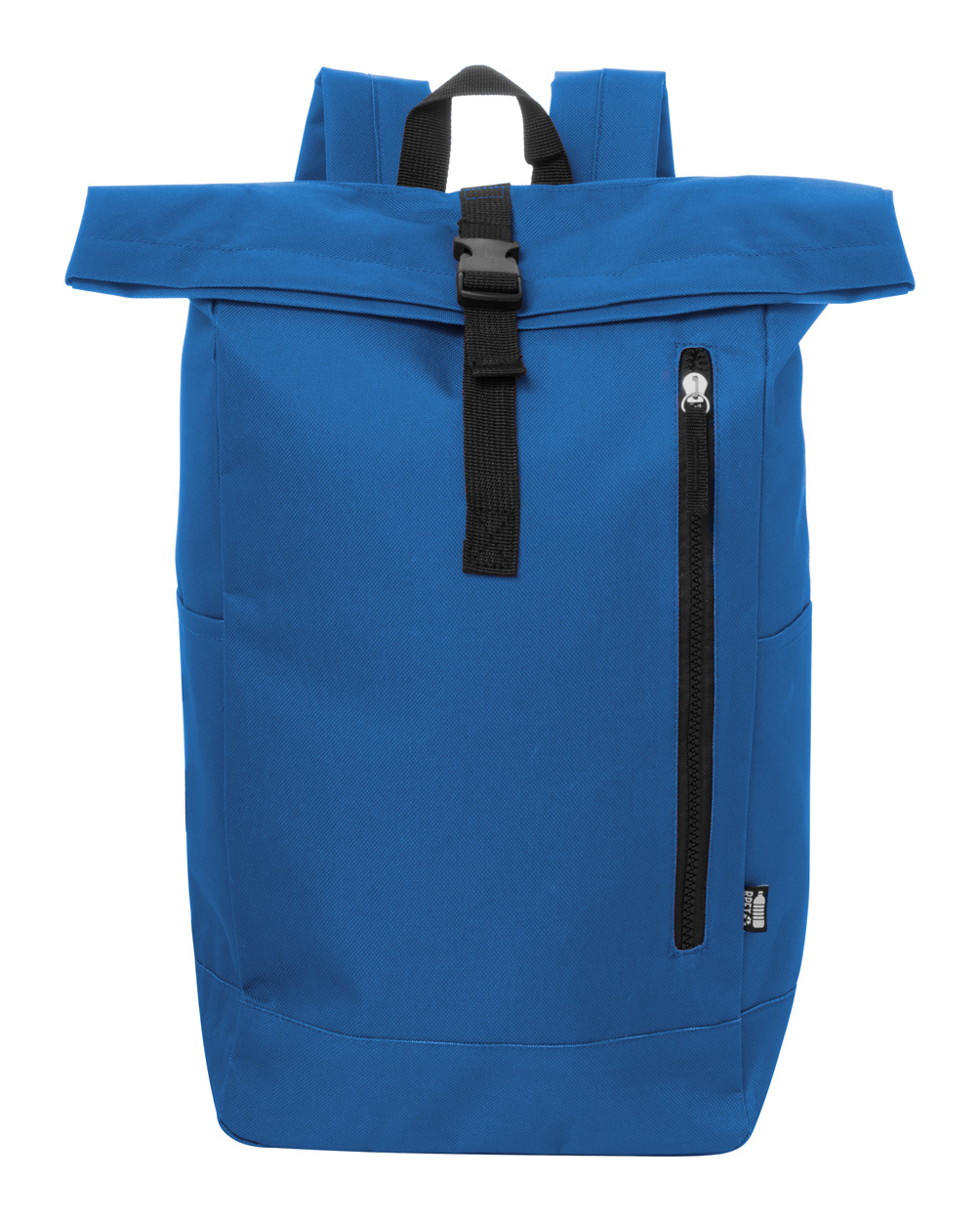 Rolovací batoh RPET se zapínáním na přezku, přihrádkou na notebook (14") a přední kapsou na zip. S polstrovanými zády a ramenními popruhy. Polyester 600D RPET s výrazným štítkem RPET.